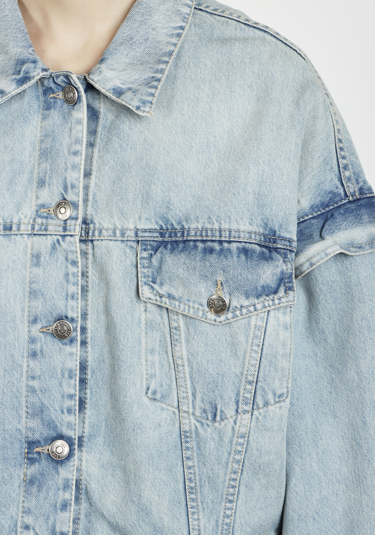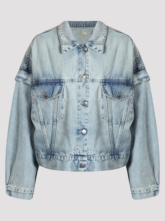 Куртка джинсовая 8PM, цвет голубой, 100% хлопок. Элегантная и лаконичная модель с классической отделкой и небольшими карманами. Фактура денима придает куртке легкость и универсальность, подчеркивая современный тренд в стиле streetwear. Крой прямого силуэта обеспечивает комфорт и свободу движений.