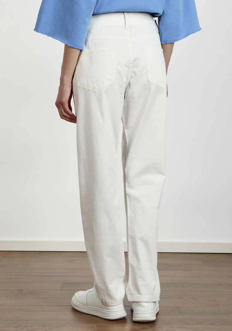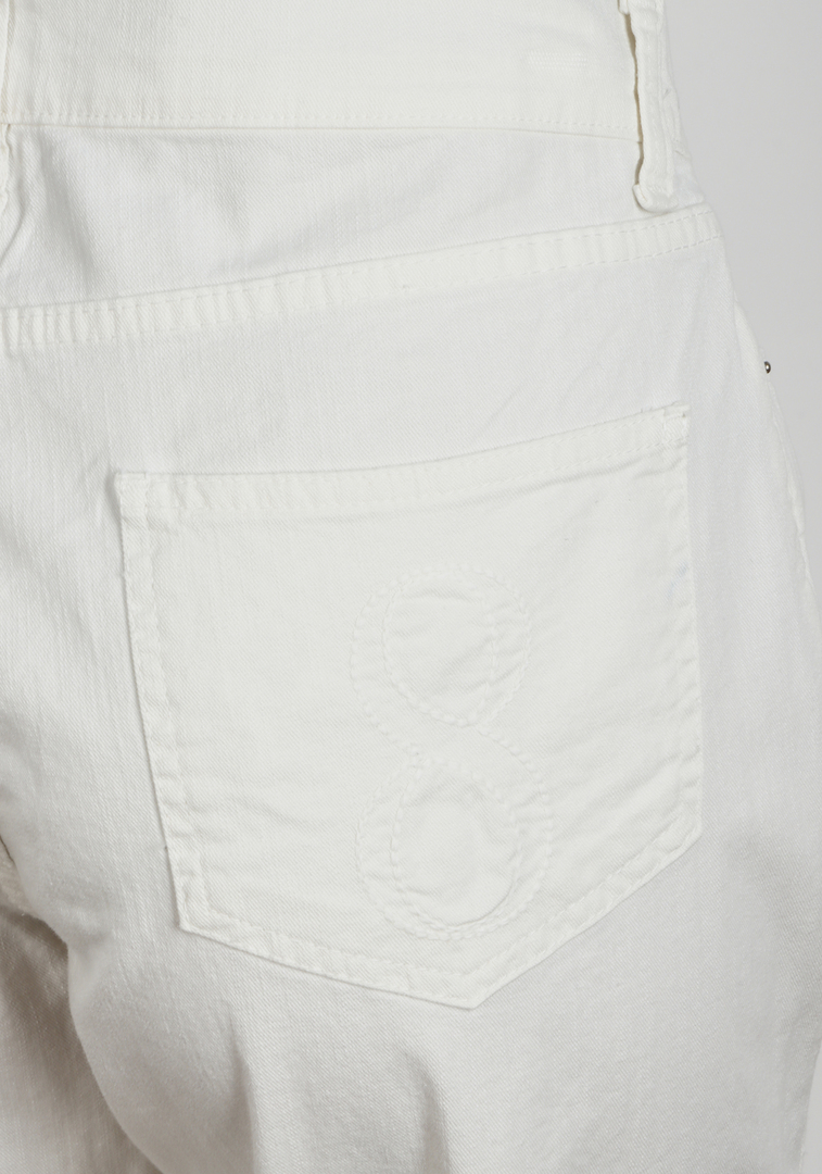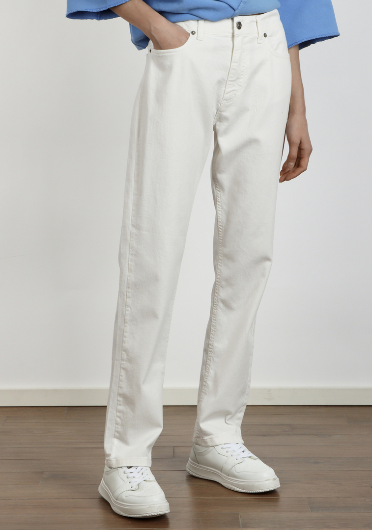 Джинсы 8PM, цвет белый, состав 97% хлопок, 3% эластан. Лаконичная классика с неповторимой фактурой ткани, подчеркивающей стиль и комфорт. Элегантный крой в трендовом силуэте обеспечивает свободу движений и уверенность в себе. Декорированы простыми пуговицами и карманами, создавая баланс между функциональностью и эстетикой.