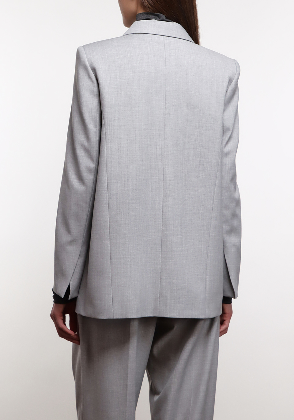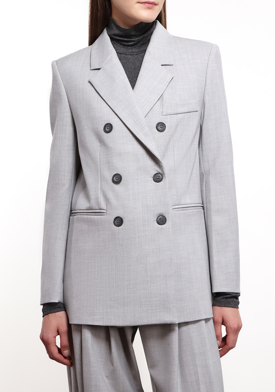 Жакет 8PM, серый, сочетает элегантность и лаконичность. Изготовлен из смеси 58% полиэстера, 21% шерсти, 18% рэйона и 3% эластана, обеспечивая комфорт и легкость в ношении. Фактура ткани гладкая, текстура плотная, придающая жакету строгий и современный стиль. Тренд сезона — минимализм и универсальность кроя, который подчеркивает силуэт, создавая идеальную форму для любого образа. Двойные пуговицы и классический двубортный фасон делают модель актуальной и стильною, подходящей как для деловых встреч, так и для вечерних мероприятий.