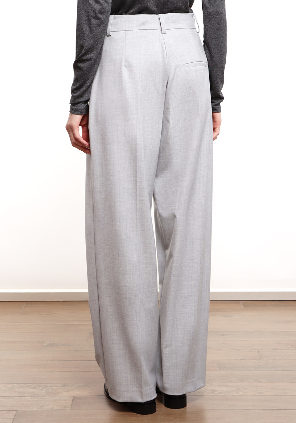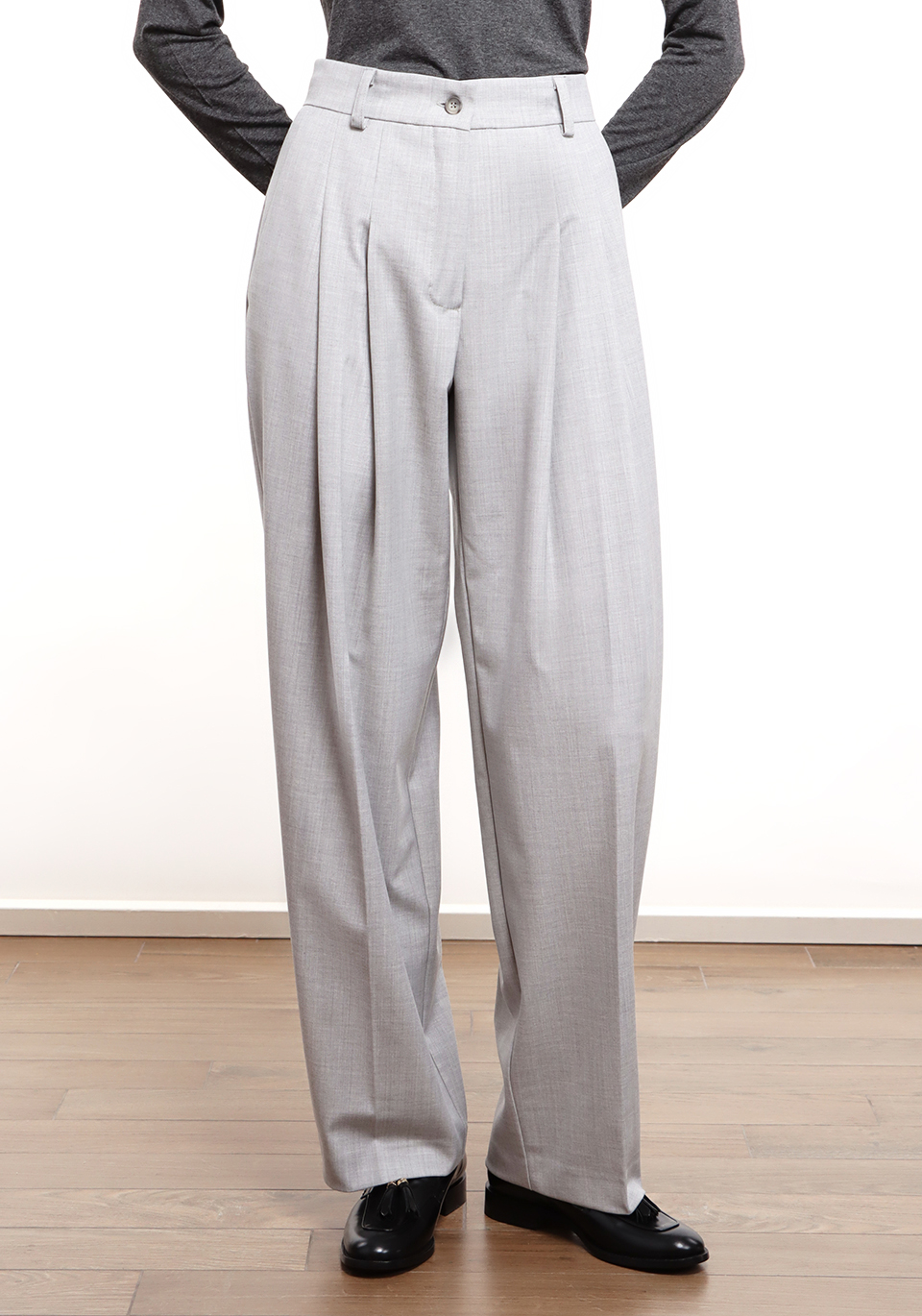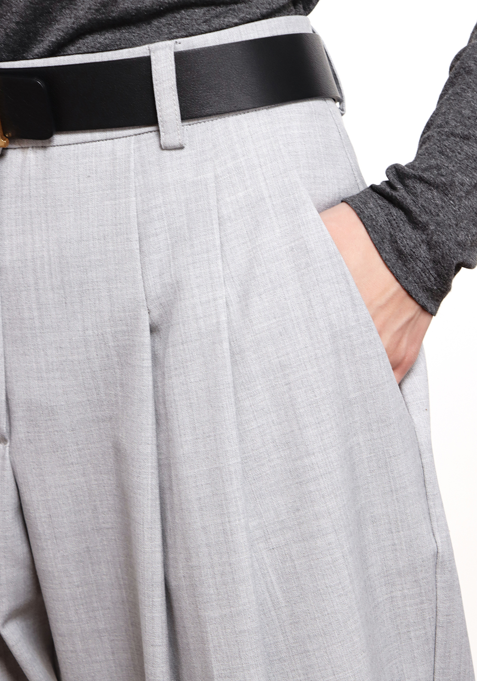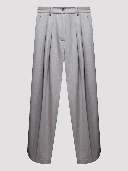 Брюки 8PM, серые, из элегантного смесового материала на основе шерсти и полиэстера, с легкой фактурой и ровной текстурой. Стильные брюки в тренде делового гардероба, выполнены в классическом крое с небольшими складками по бокам, создавая лаконичный силуэт. Отделка минималистичная, акцентирует внимание на высоком качестве ткани и точном крою.