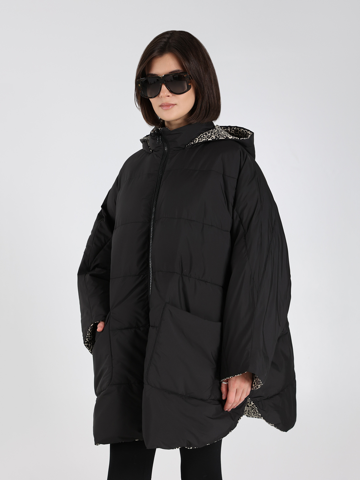 Куртка 8PM черного цвета, выполненная из гладкого полиэстера, сочетает в себе минималистичный силуэт и современный леопардовый принт на капюшоне. Элегантная модель с прямым кроем и двумя накладными карманами подчеркивает женственность и универсальность. Идеальный выбор для повседневного стиля, где простота встречается с изысканностью.