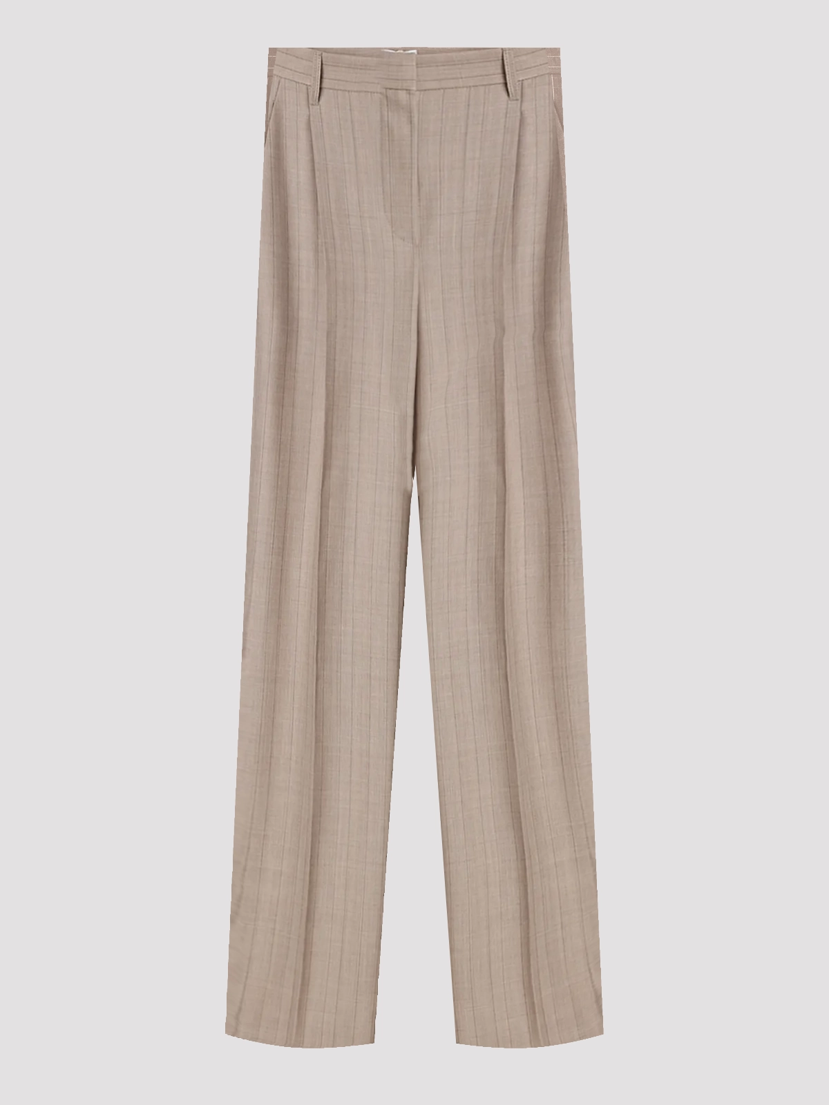 Брюки Brunello Cucinelli, цвет бежевый, 100% шерсть. Элегантные брюки с классическим кроем и лаконичным силуэтом, текстура шерсти придает им роскошный вид. Отделка простая, акцентирует внимание на высоком качестве материала и изысканном стиле.