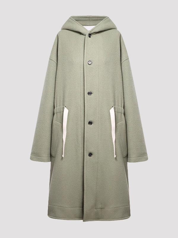 Пальто Comeforbreakfast, цвет зеленый, 100% шерсть. Элегантное пальто с капюшоном и длинными рукавами, текстура шерсти мягкая и роскошная, идеально подходит для осеннего тренда. Лаконичный крой и силуэт создают неповторимую элегантность, дополненные простыми металлическими пуговицами.