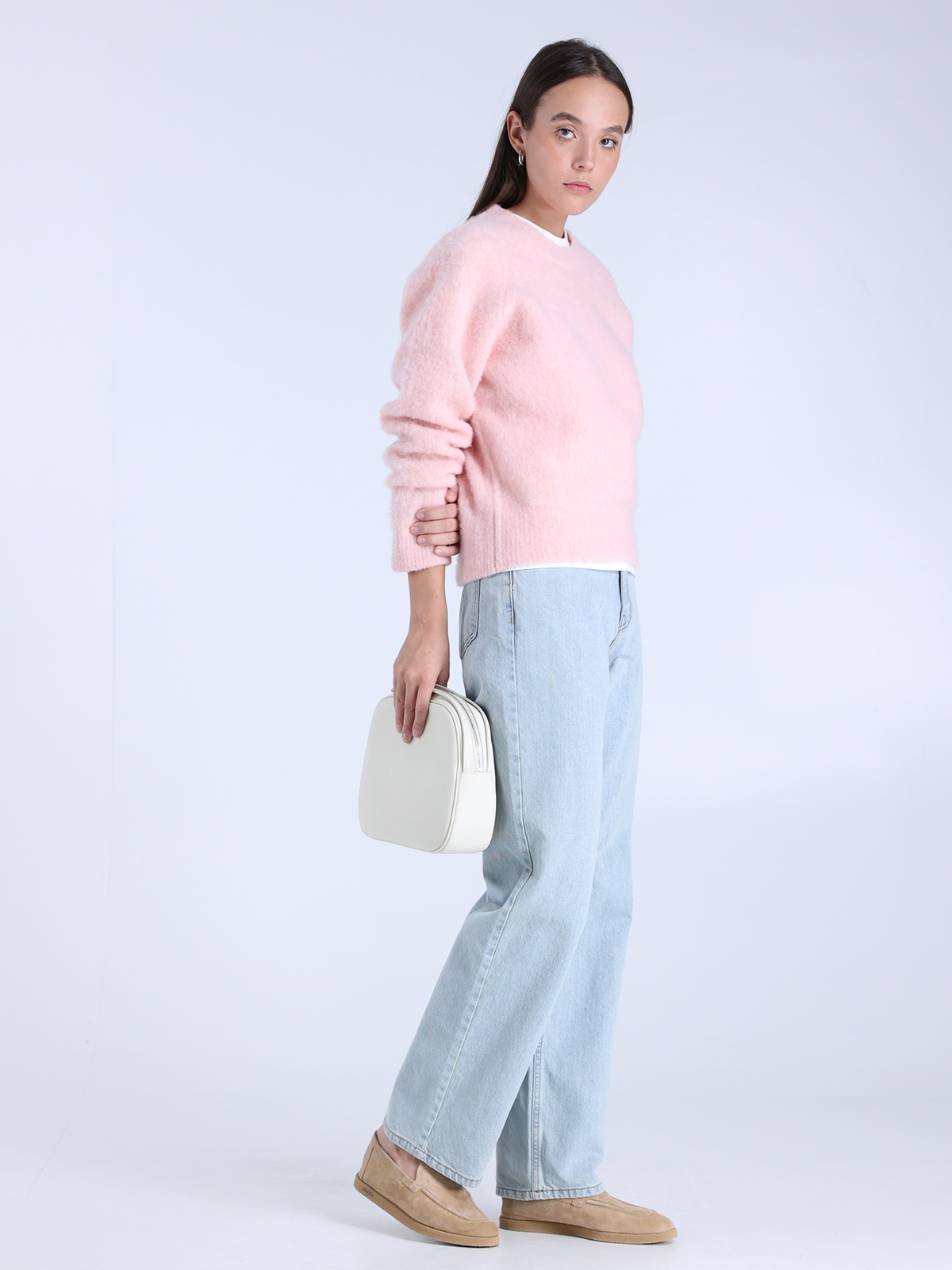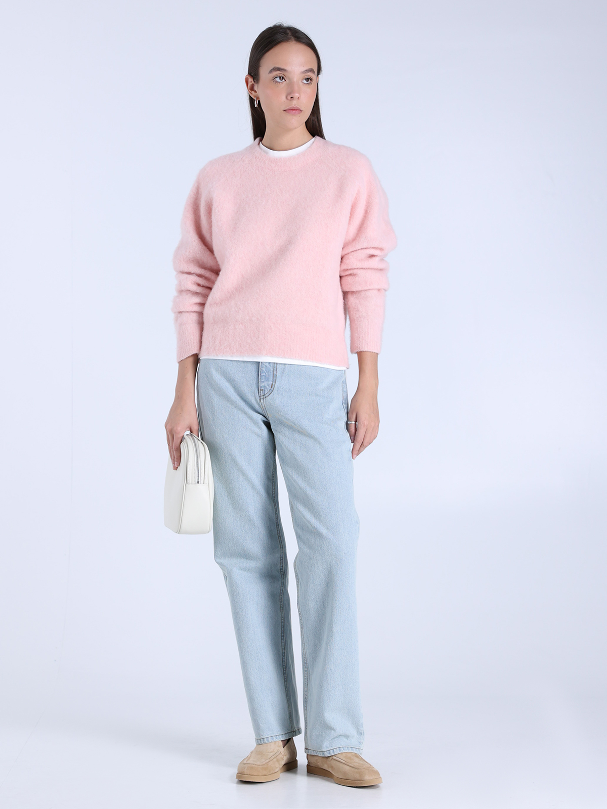 Джинсы Dunst выполнены из 100% хлопка и отличаются нежной голубой окраской, придающей им свежий и элегантный вид. Структура ткани подчеркивает натуральность материала, а свободный крой создает современный и комфортный силуэт. Минималистичная отделка с акцентом на классические детали делает их универсальным элементом гардероба, идеально подходящим для создания стильных образов в духе тренда.
