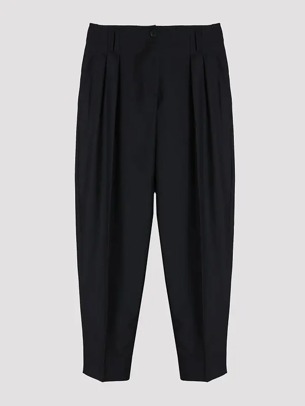 Брюки Erika Cavallini выполнены из 100% шерсти, что придает им насыщенный черный цвет и благородную текстуру. Классический крой с плавными складками подчеркивает элегантность и современность. Подкладка из ацетата и полиэстера обеспечивает комфорт и легкость. Идеальный выбор для тех, кто ценит качество и стиль.