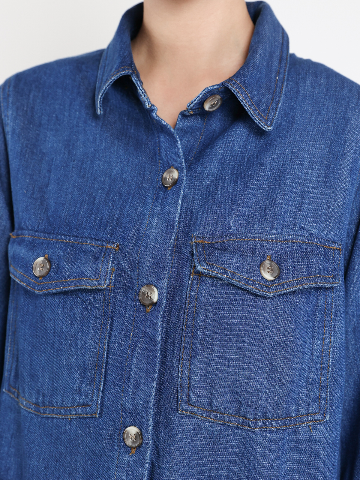 Рубашка джинсовая Gerard Darel, цвет синий, 100% лиоцелл. Элегантная фактура и текстура ткани создают неповторимый шарм, сочетая в себе классику и современный стиль. Тренд сезона — свободный крой и лаконичный силуэт, идеально подходящий для создания стилистически выверенных образов. Декорирована простыми пуговицами и карманами, которые подчеркивают функциональность и элегантность модели.