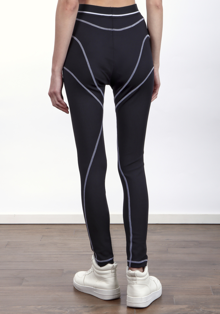 Легинсы Good&Bad выполнены из эластичного материала, сочетающего 85% полиэстер и 15% эластан, что обеспечивает комфорт и идеальную посадку. Черный цвет подчеркивает строгий и современный стиль, а контрастные серые линии на талии и бедрах создают динамичный акцент. Силуэт облегающий, с высокой посадкой, подчеркивающий фигуру. Модель отличается минималистичным дизайном и функциональностью, идеально подходящей для активного образа жизни.