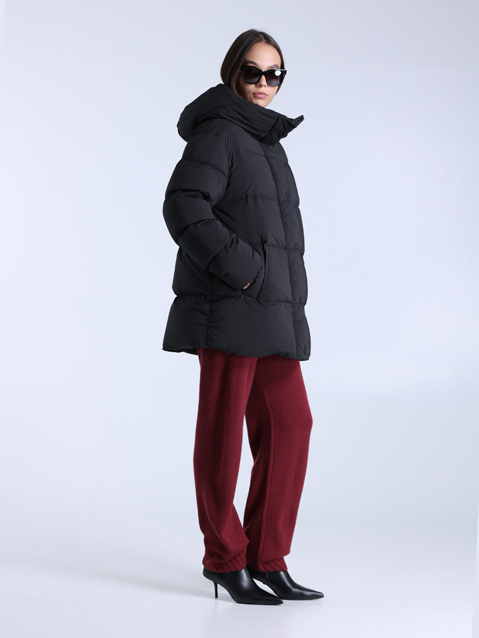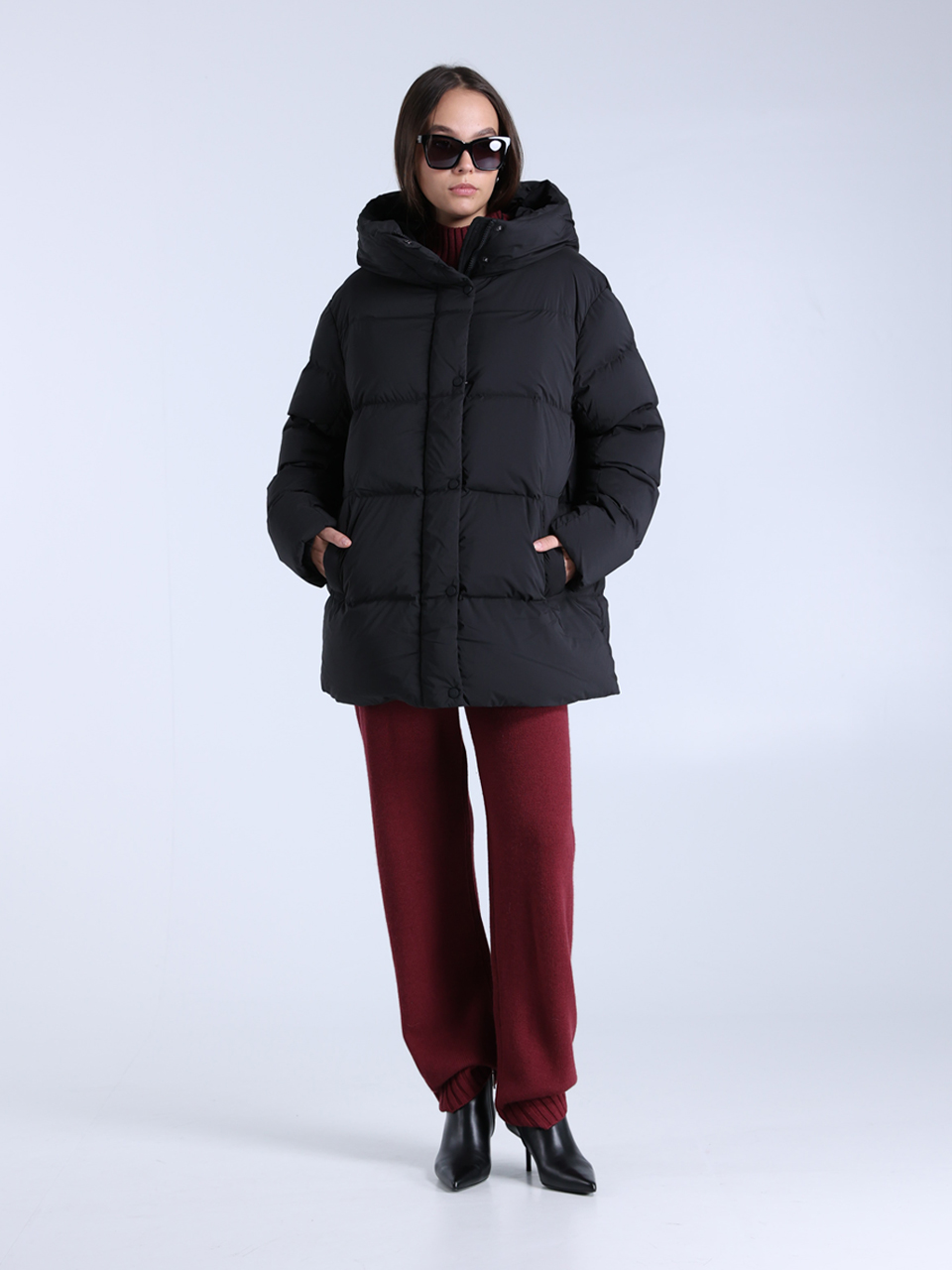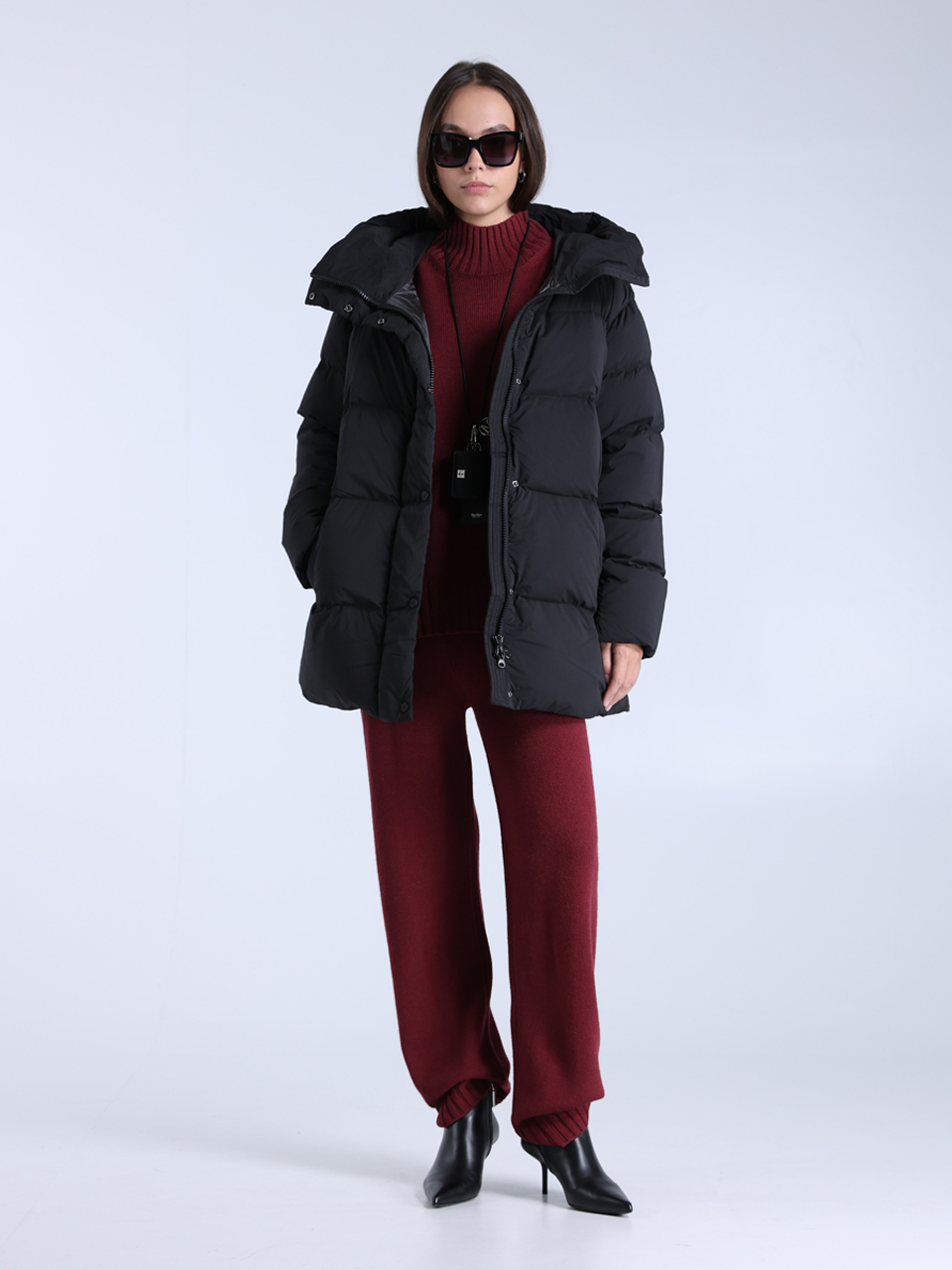 Состав: 90% полиэстер, 10% эластан, наполнитель: 90% пух, 10% перо, подклад: 100% полиамид