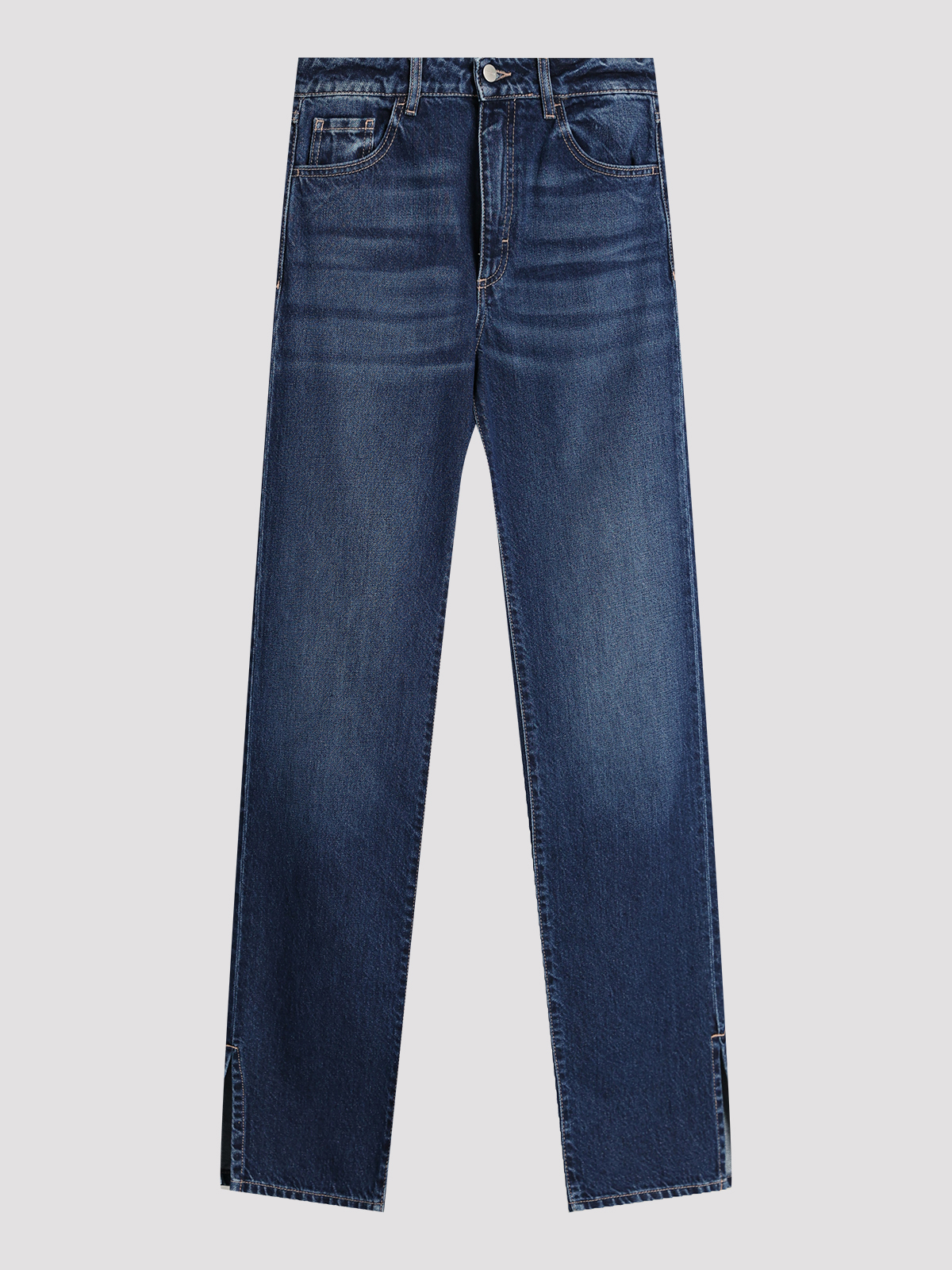 Джинсы Icon Denim темно-синего цвета, выполненные из 100% хлопка, обладают классической текстурой с легким эффектом выцветания. Изделие отличается прямым кроем и элегантным силуэтом, подчеркивающим современный стиль. Детали включают стандартные карманы и качественную отделку, обеспечивающую долговечность и комфорт.