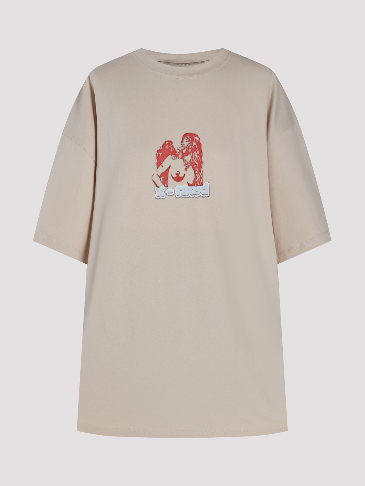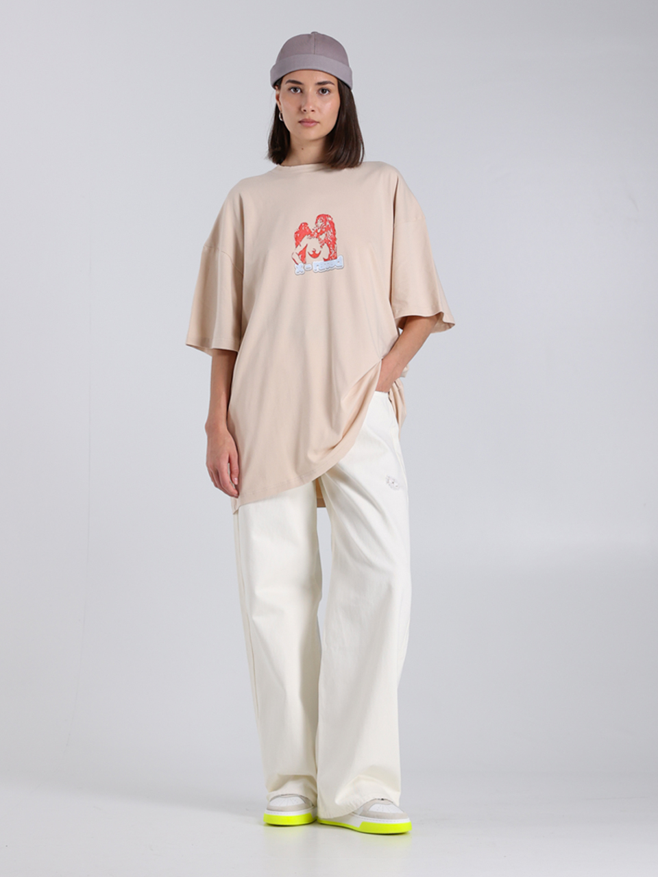 Футболка ILLUЖN в бежевом цвете, выполненная из мягкой смеси 92% хлопка и 8% эластана, обладает комфортной текстурой и свободным силуэтом. Декорированная красочным принтом с нежным рисунком, она сочетает в себе современный стиль и изысканную отделку, подчеркивая элегантность и индивидуальность.