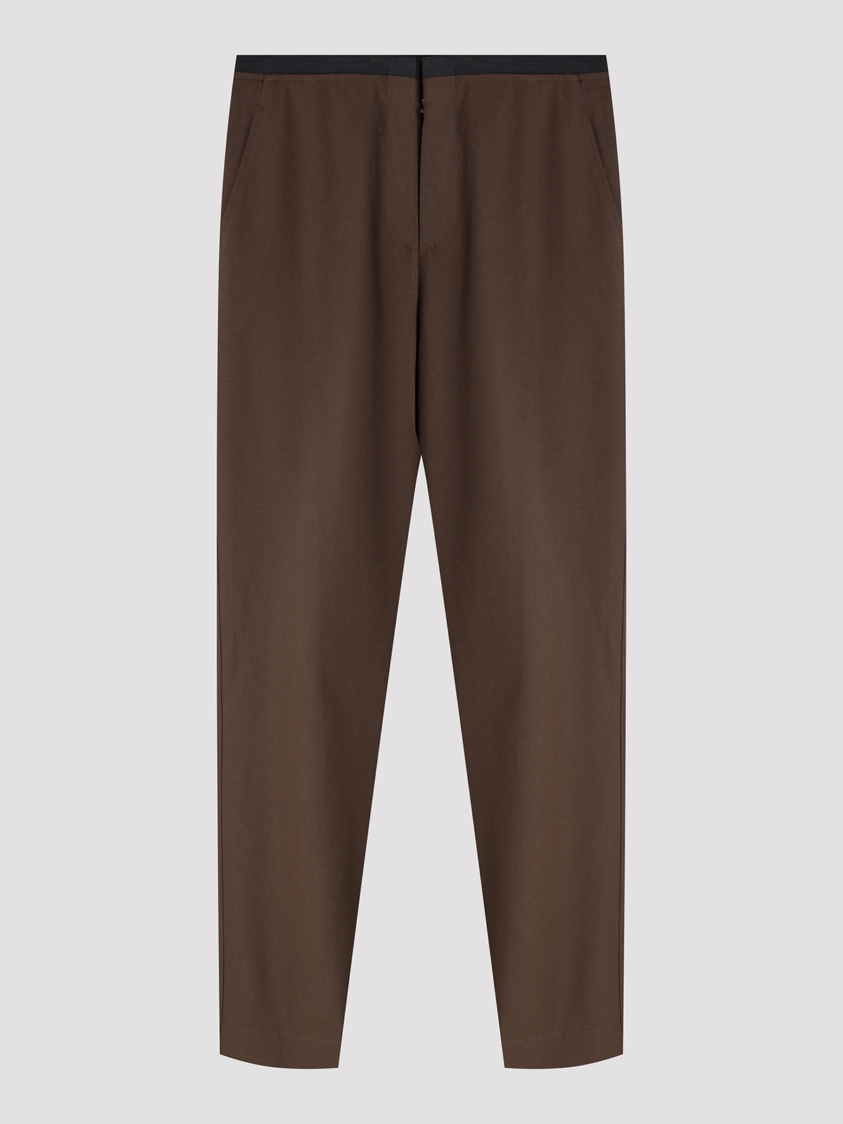Брюки LE17SEPTEMBRE коричневого цвета выполнены из смесовой ткани с содержанием 60% шерсти и 40% полиэстера, что придает им мягкую текстуру и элегантный вид. Силуэт прямой, подчеркивающий стройность фигуры, дополнен контрастной черной отделкой пояса, создающей акцент на линии талии. Идеальный выбор для современного мужчины, ценящего классический стиль и качество.