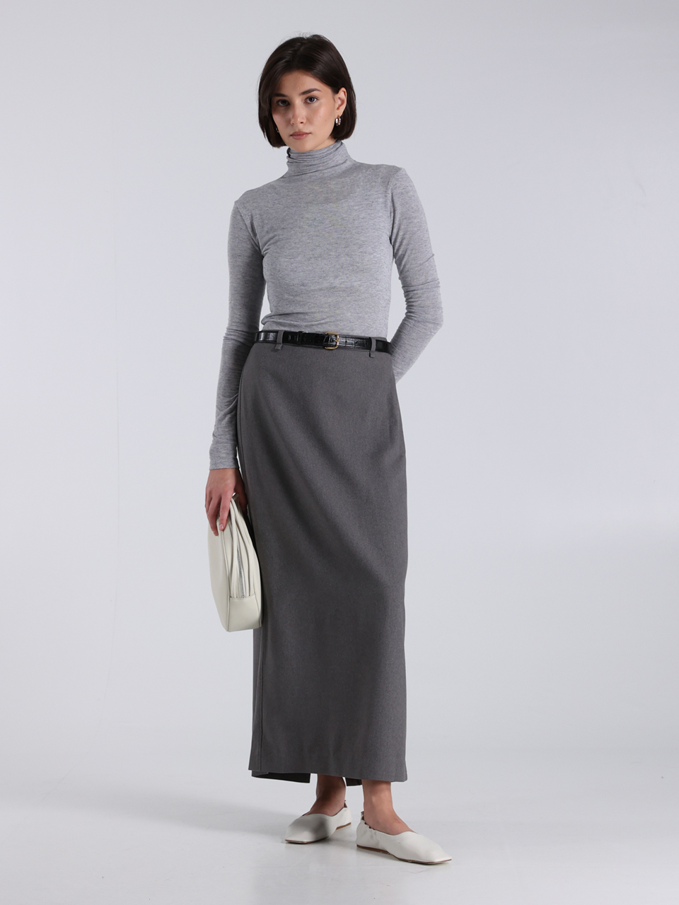 Юбка от бренда LE17SEPTEMBRE выполнена из 100% полиэстера и представлена в сером цвете. Модель с прямым кроем и длиной до щиколотки подчеркивает элегантность и современность. Текстура ткани гладкая, что придает изделию легкий блеск. Юбка дополнена черным поясом с металлической пряжкой, создающей акцент на талии. Идеально подходит для создания образов в минималистичном стиле.