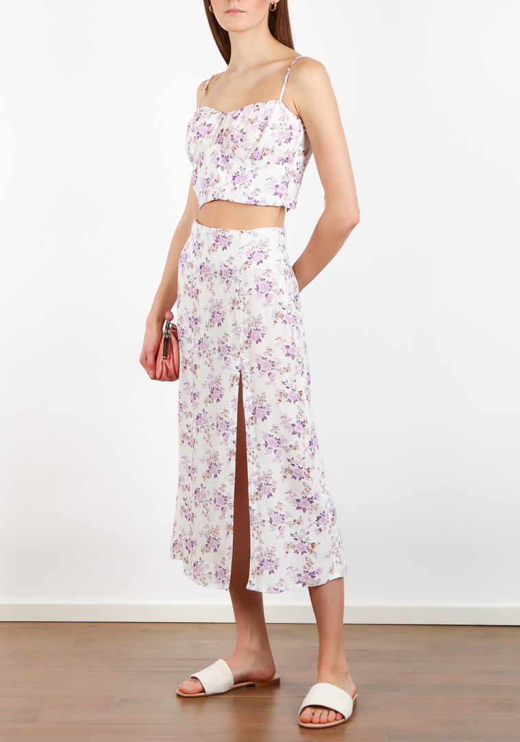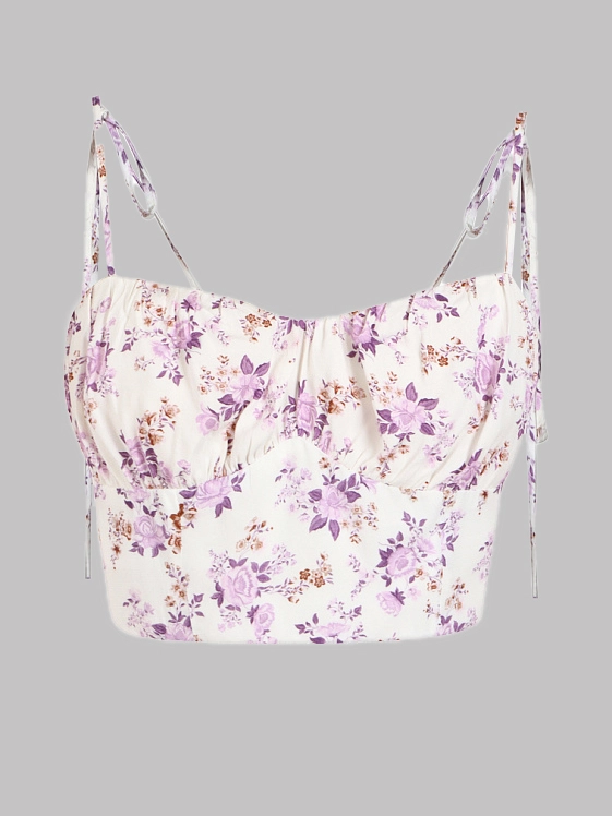 Топ Mar De Margaritas, цвет фиолетовый цветок на белом фоне, выполнен из 100% вискозы. Элегантный крой с завязками на плечах и рюшами создает лаконичный силуэт, подчеркивая шарм и нежность тренда сезонной флористики. Фактура ткани мягкая и приятная на ощупь, идеально дополняя романтический образ.
