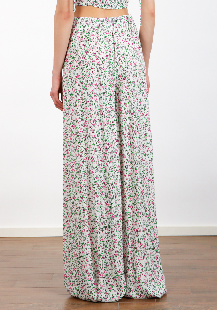 Брюки Mar De Margaritas, цвет розовый цветок на сером фоне, выполнены из 100% вискозы. Тонкая фактура ткани придает брюкам легкость и элегантность, подчеркивая их стильный тренд сезона. Декорированы небольшими розовыми цветочками, создавая нежный и романтический образ. Крой с высокой талией и широкими штанинами обеспечивает комфорт и свободу движений, идеально подходящий для любого дня.