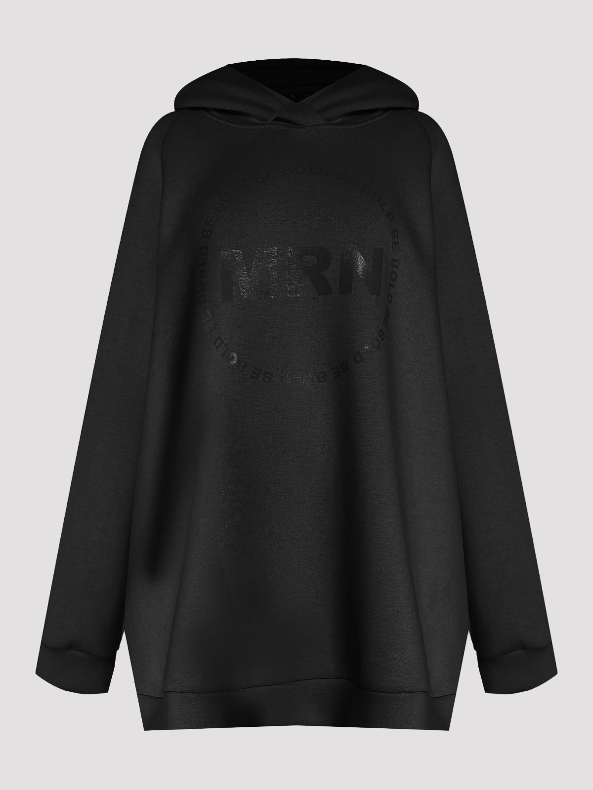 Толстовка спортивная Marina Rinaldi выполнена из мягкой смесовой ткани, сочетающей 66% полиэстер, 28% вискозу и 6% эластан. Черный цвет подчеркивает минималистичный стиль, а крупный логотип на груди добавляет современный акцент. Модель с капюшоном и длинными рукавами имеет свободный крой, обеспечивающий комфорт и универсальность. Элегантная простота дизайна делает её идеальным выбором для повседневного образа.