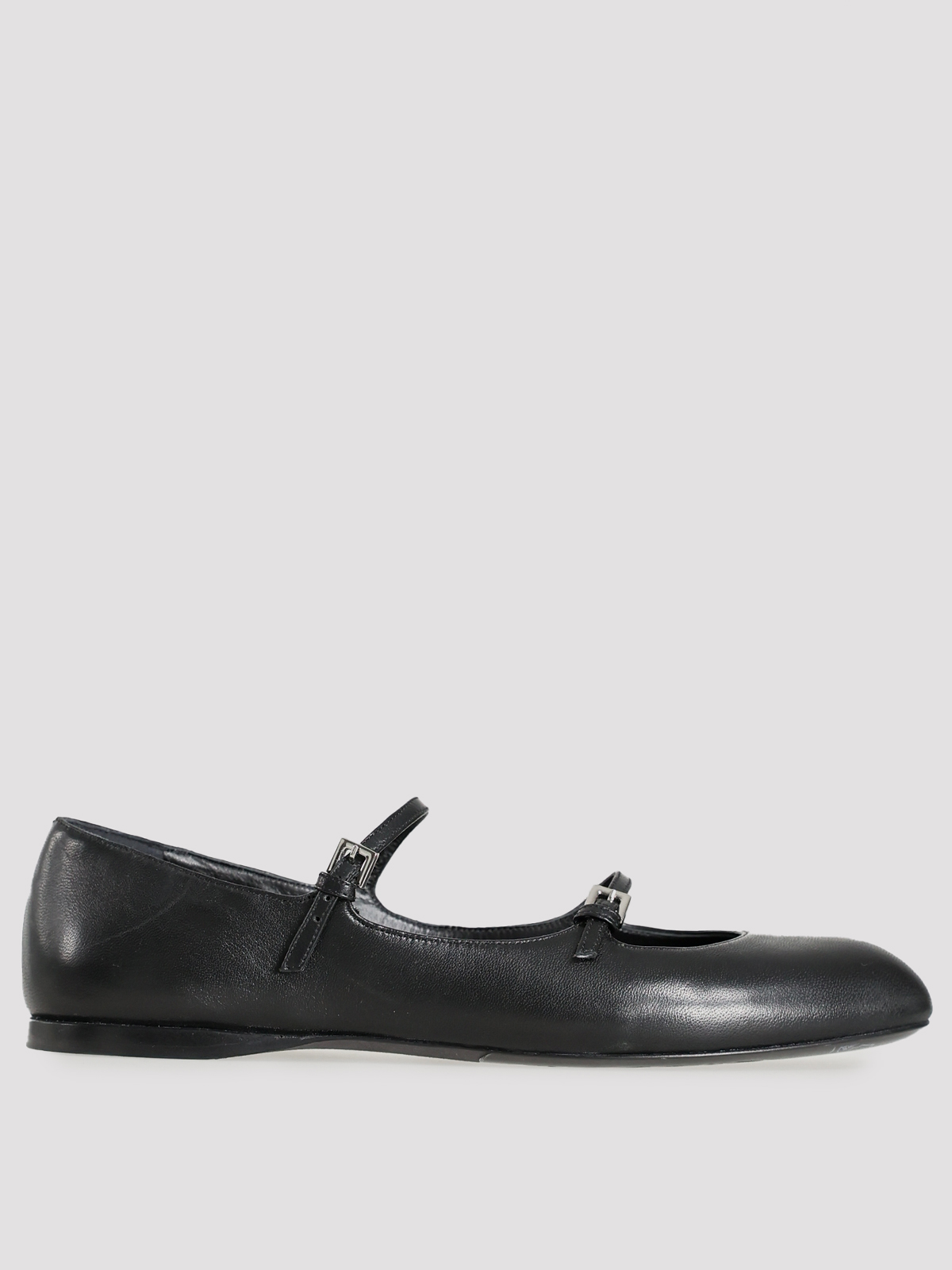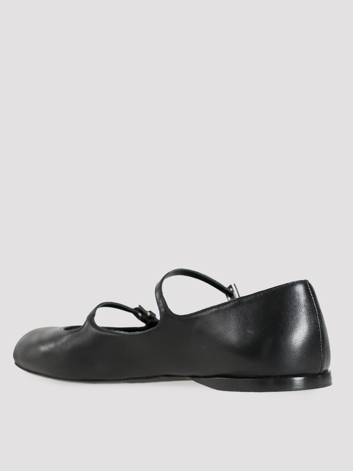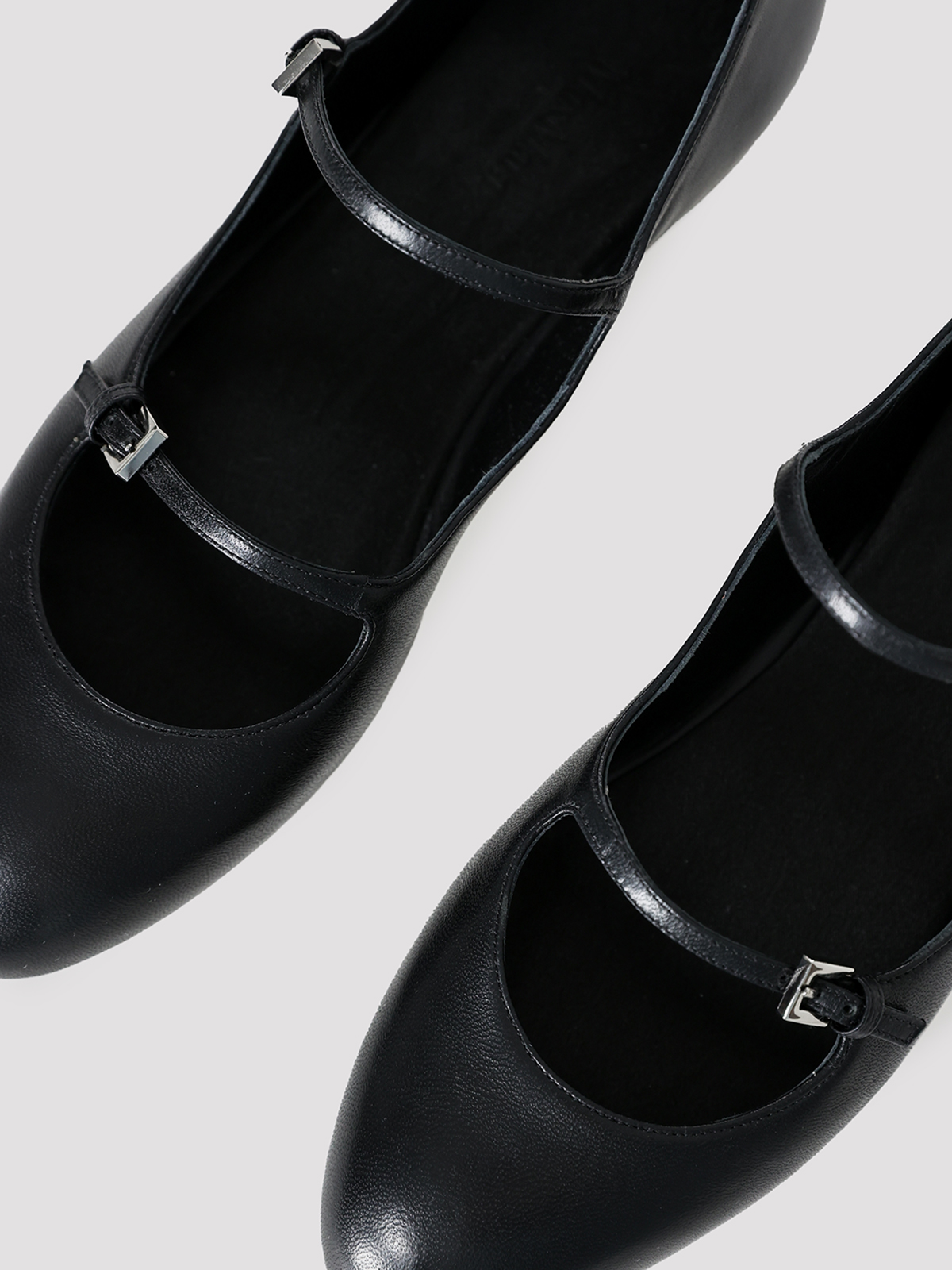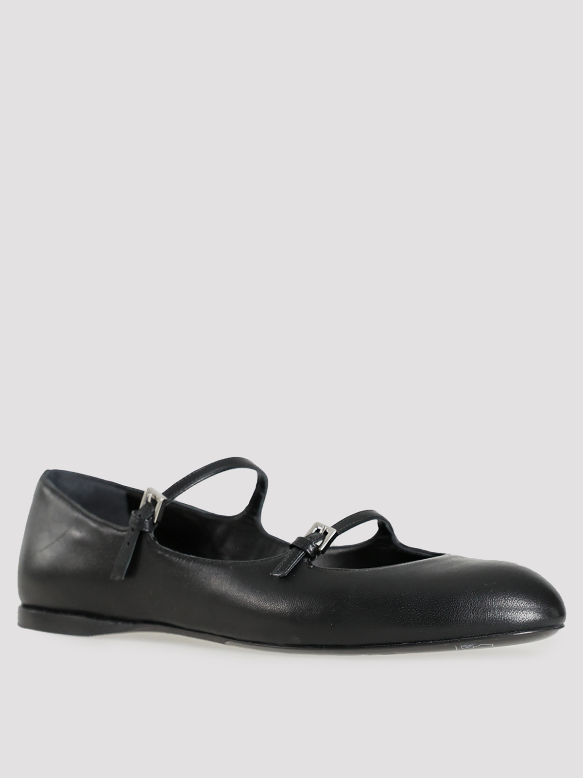 Балетки Max Mara выполнены из гладкой черной кожи, что подчеркивает их элегантный и классический стиль. Контрастная серебристая фурнитура на ремешке добавляет изысканности, а идеальный крой обеспечивает комфорт и универсальность. Эти балетки — воплощение вечной элегантности и безупречного вкуса.