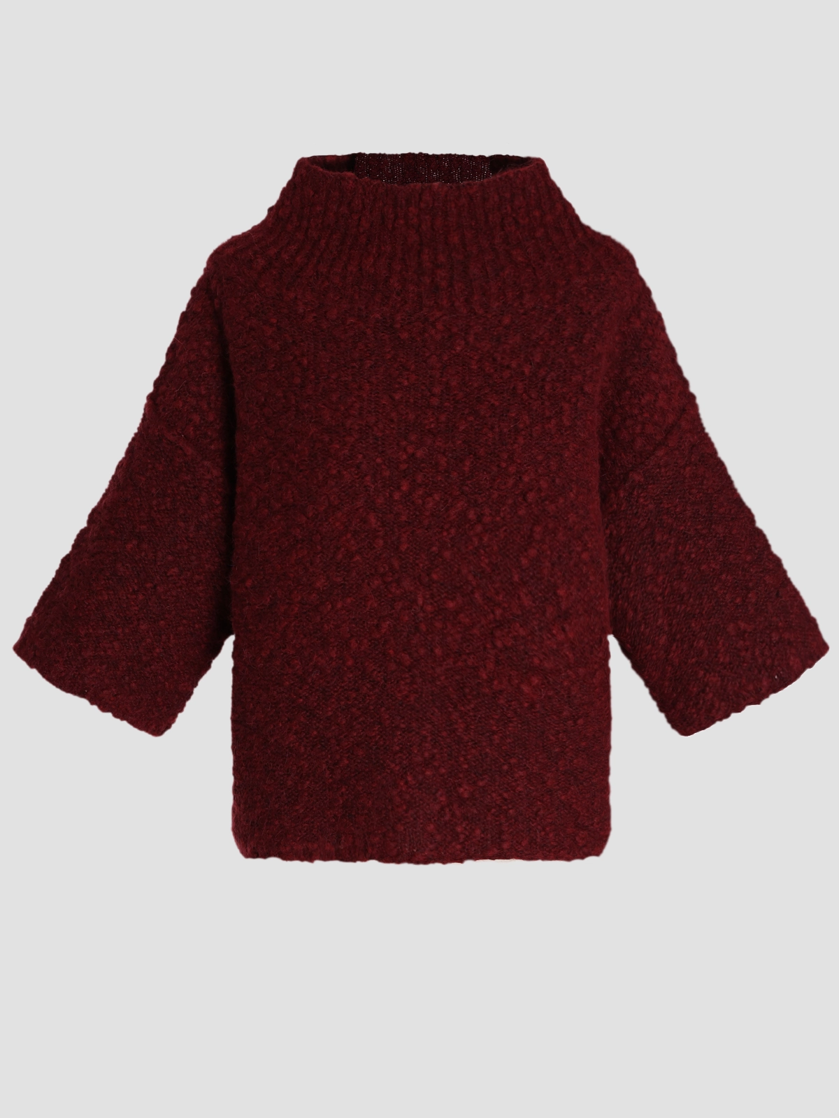 Свитер Max Mara в насыщенном бордовом цвете, выполненный из смеси 68% альпаки, 22% полиамида и 10% шерсти, обладает нежной текстурой с легким блеском. Классический крой с высоким воротником и рукавами свободного силуэта подчеркивает элегантность и современность. Модель идеально сочетает комфорт и стиль, создавая образы, отражающие утонченный вкус и безупречный вкус бренда.