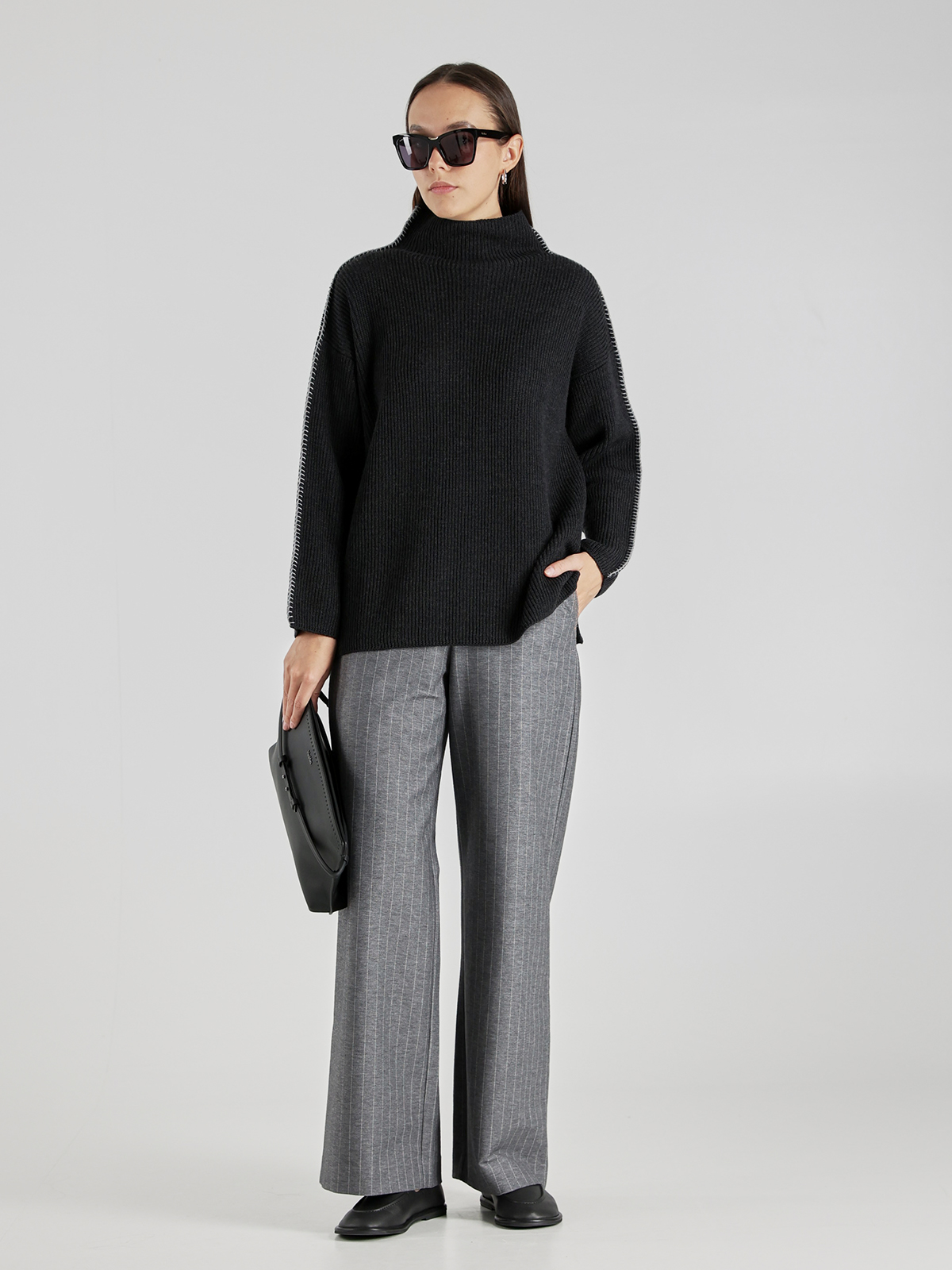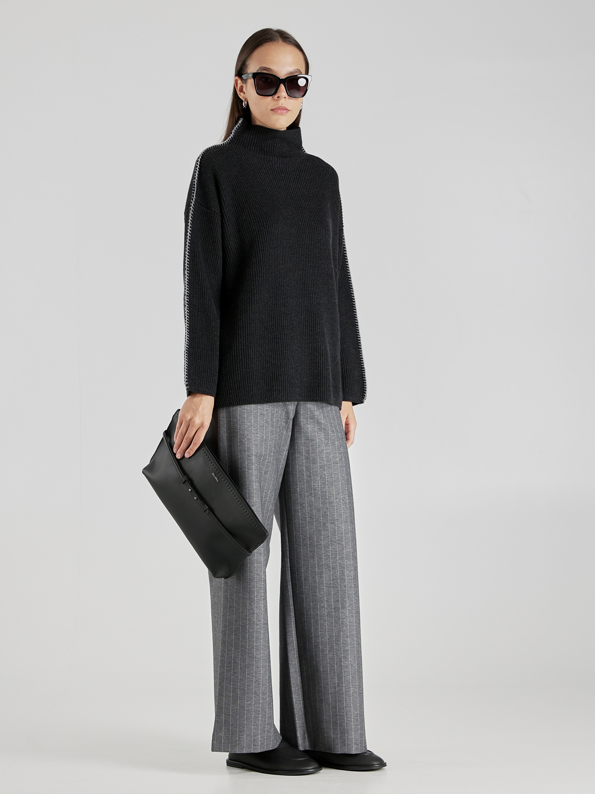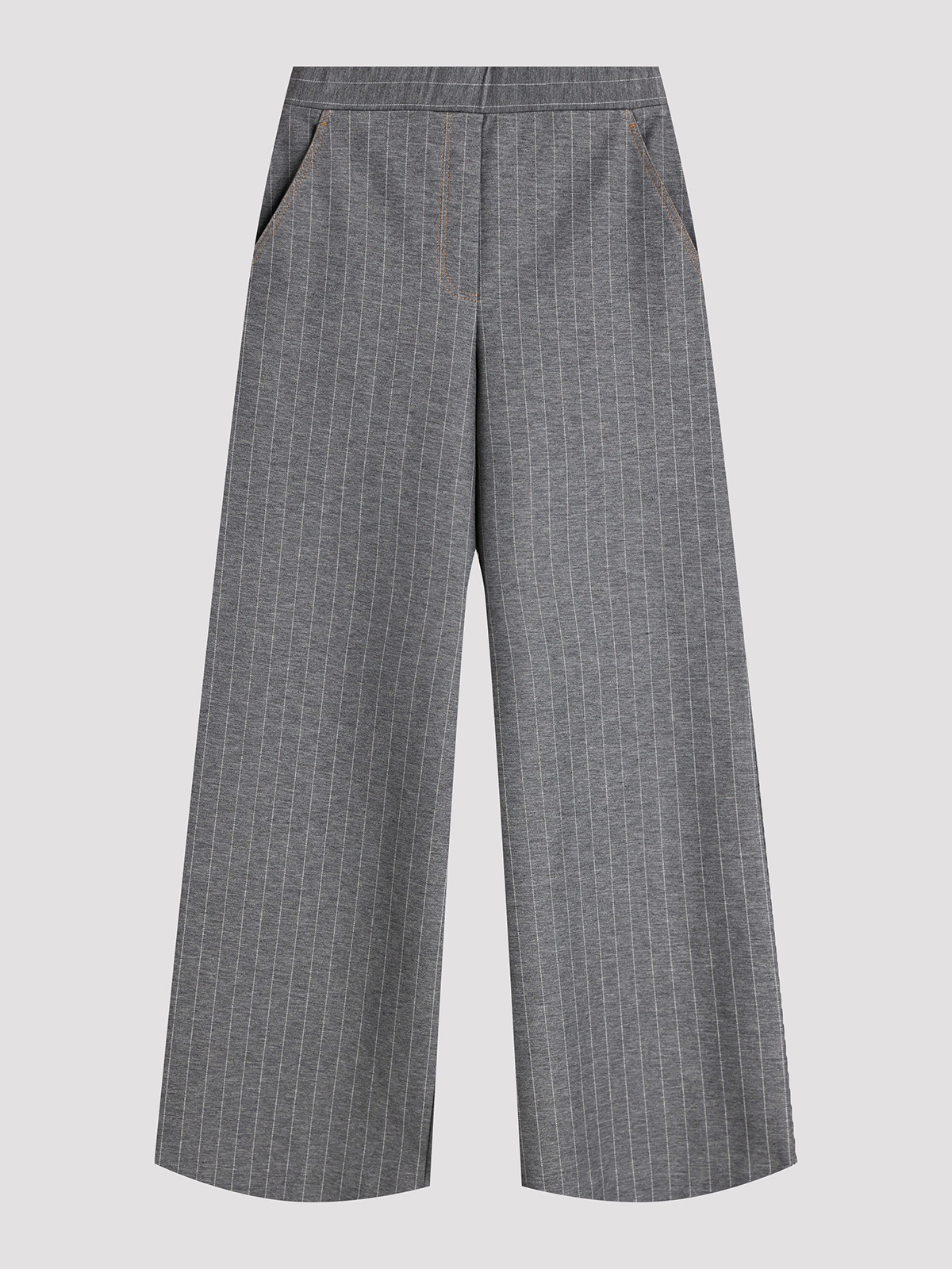 Брюки Max Mara в сером цвете, выполненные из смеси хлопка, полиэстера и эластана, обладают текстурой с тонким вертикальным рисунком. Свободный крой и аккуратные боковые карманы придают модели элегантный и современный вид, идеально подходящий для делового стиля.