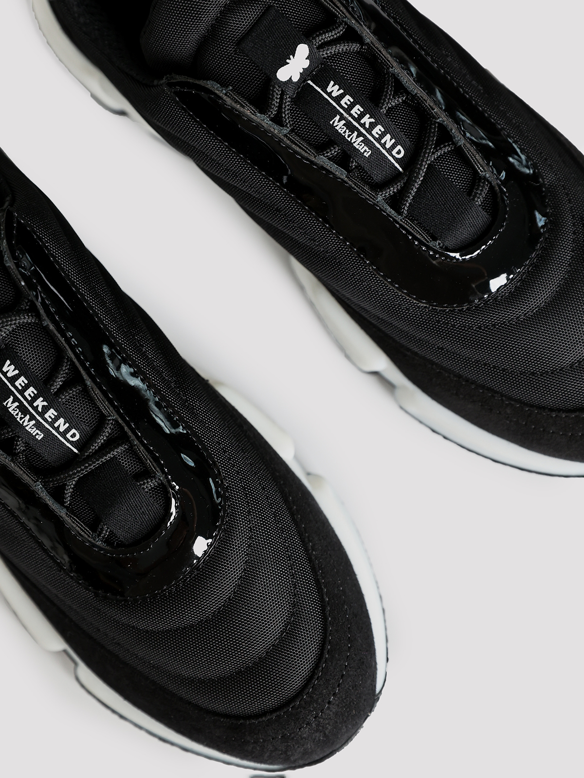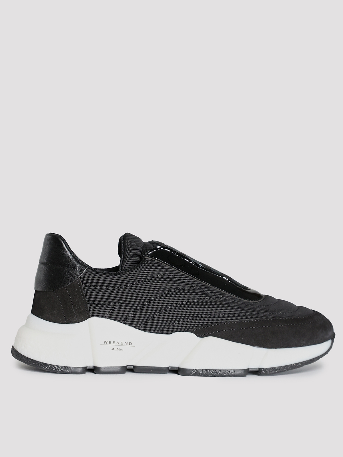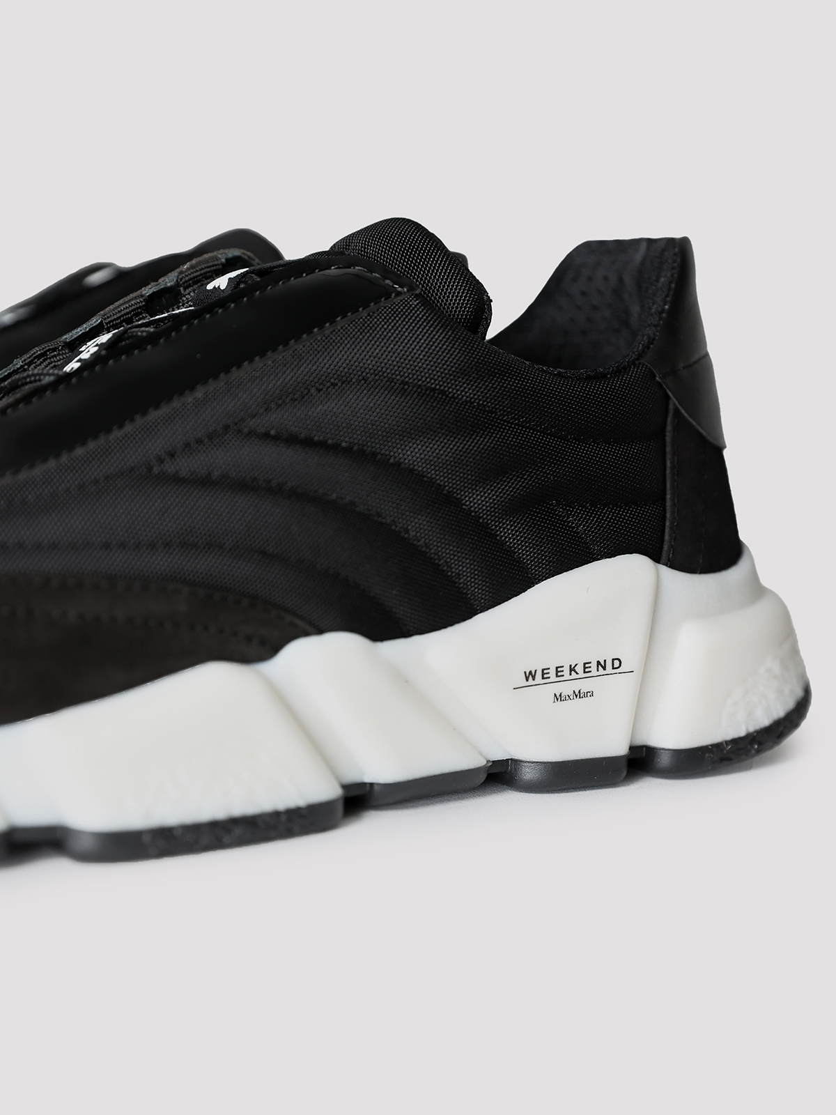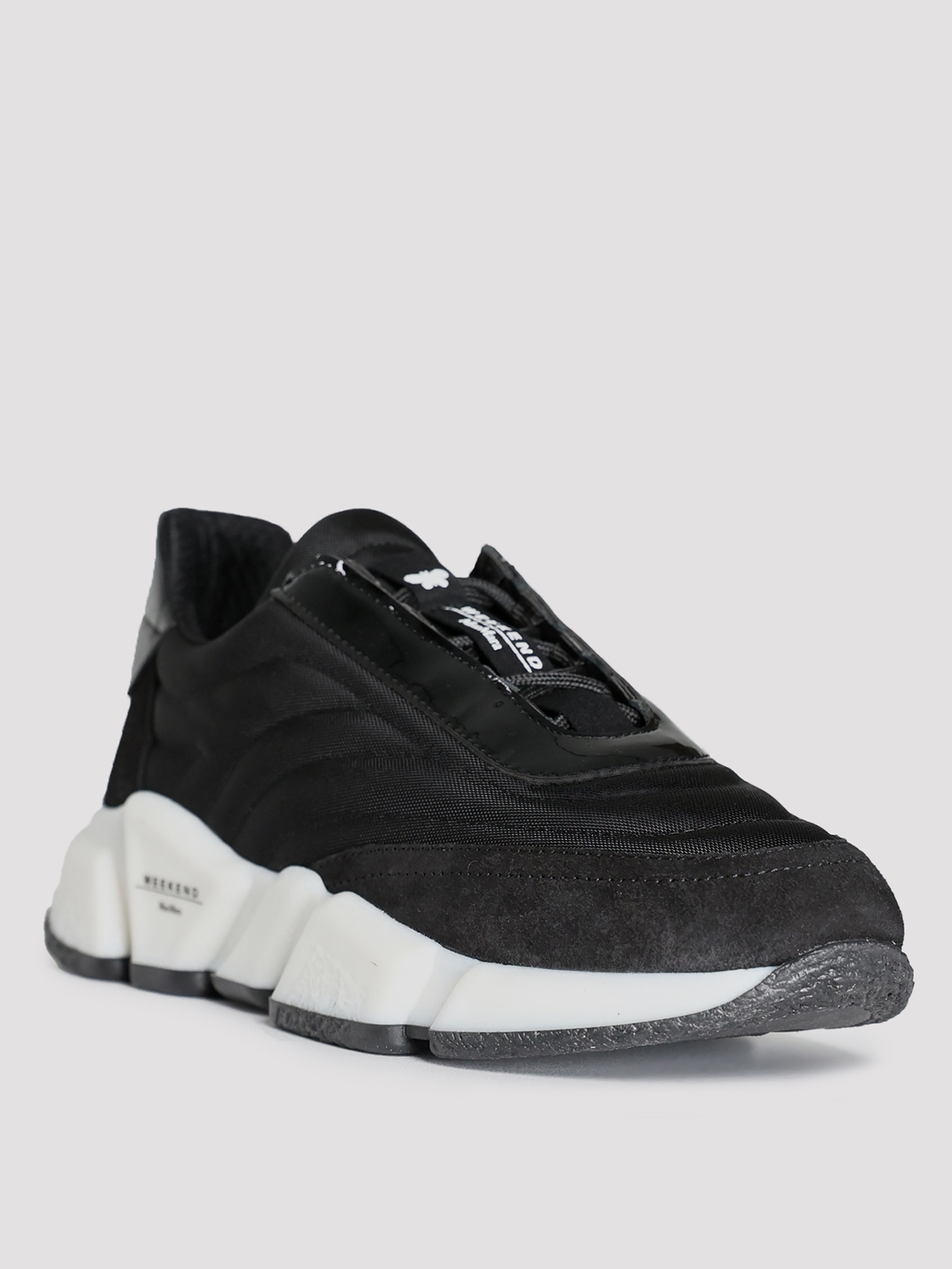 Кроссовки Max Mara Weekend выполнены в черном цвете из комбинации 50% полиамида и 50% кожи, что придает им текстурированную фактуру. Модель с элегантным силуэтом дополнена контрастной белой подошвой и декоративной застежкой-молнией на язычке. Подкладка из 100% полиэстера обеспечивает комфорт, а резиновая подошва подчеркивает современный и минималистичный стиль.