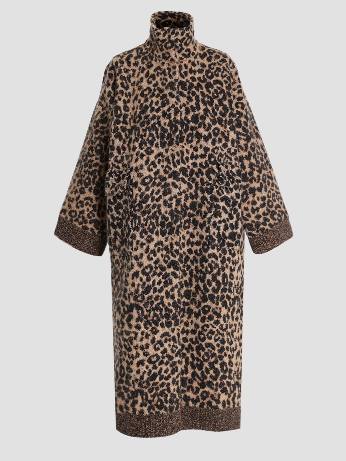 Пальто от бренда Nude в коричневом цвете с леопардовым принтом, выполненное из смеси шерсти, полиамида и альпаки, обладает мягкой текстурой и свободным кроем. Подкладка из 100% полиэстера обеспечивает комфорт. Модель с высоким воротником и длинными рукавами подчеркивает элегантность и современный стиль.