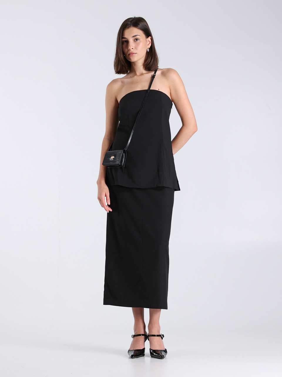 Топ без бретелей от Papermoon, выполненный в черном цвете из смеси 68% полиэстера, 28% района и 4% спандекса. Модель с элегантным кроем подчеркивает фигуру, текстура ткани гладкая и приятная на ощупь, идеально сочетает в себе комфорт и стиль.