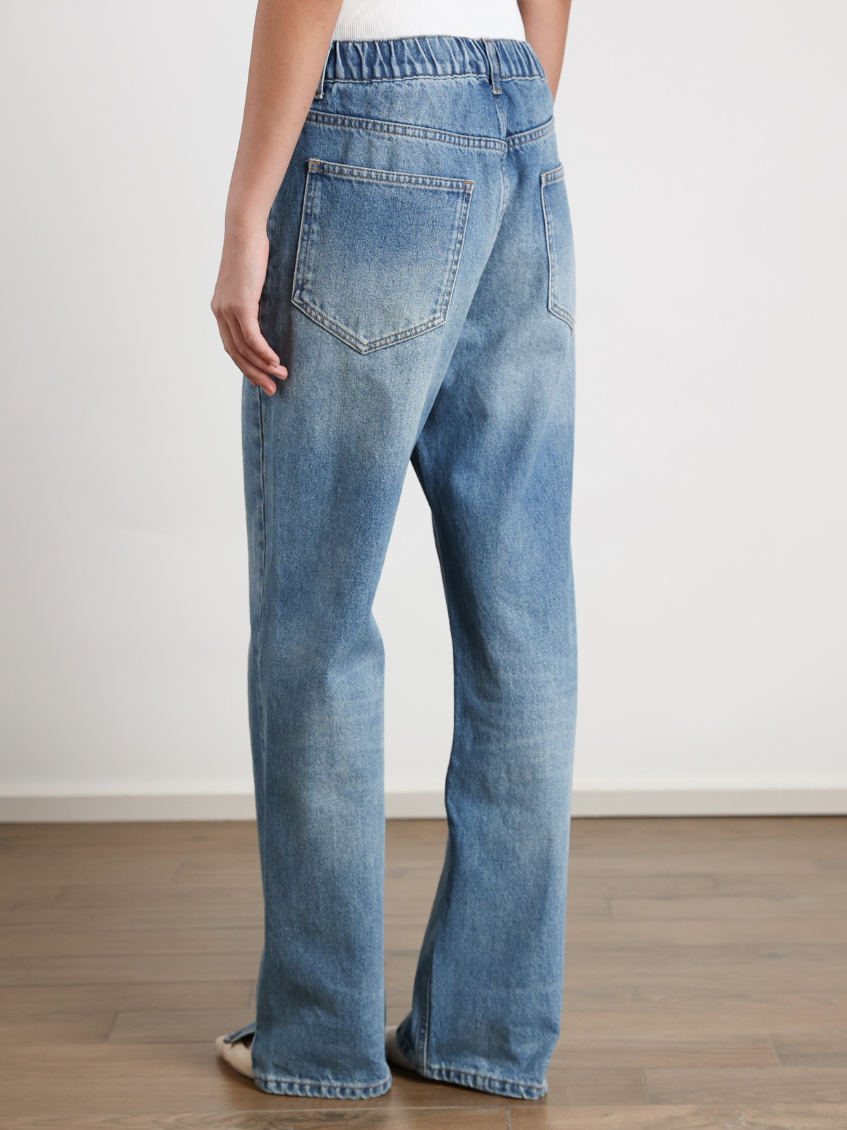 Джинсы Precise выполнены из 100% хлопка и отличаются элегантным синим оттенком с эффектом легкого потертого фасона. Прямой крой и минималистичный дизайн подчеркивают современный стиль, а аккуратная отделка швов и небольшой разрез на подоле добавляют изюминку. Идеальный выбор для повседневного гармоничного образа.