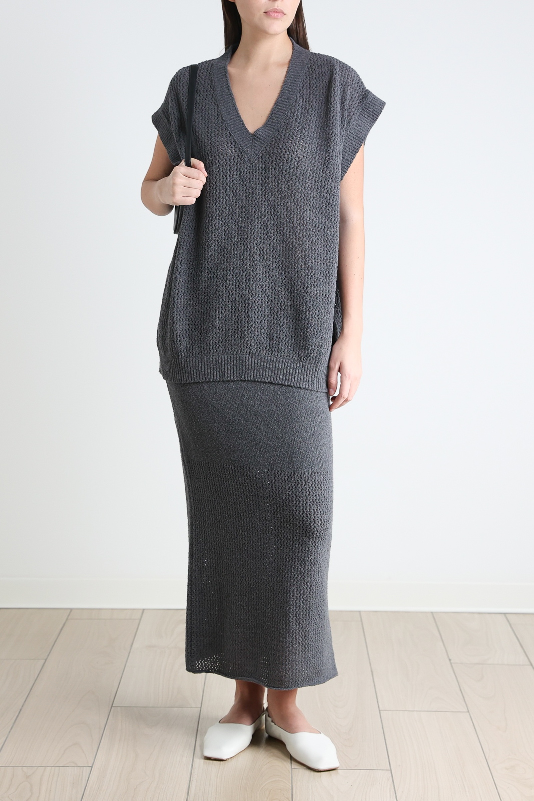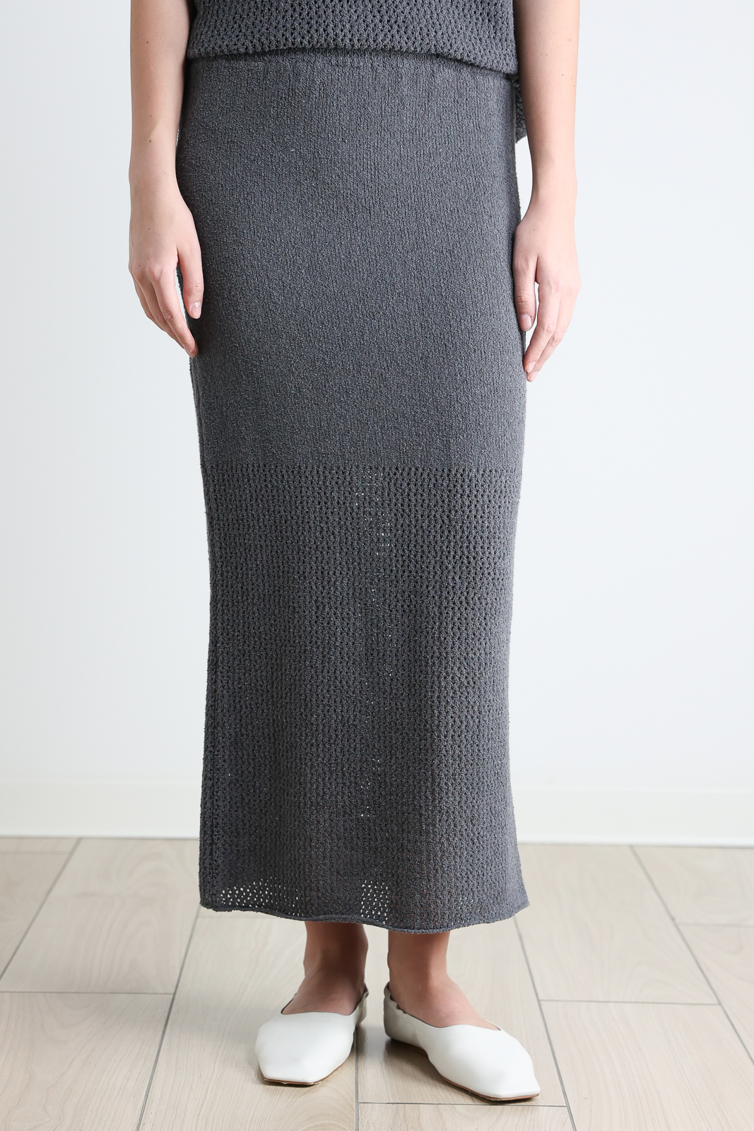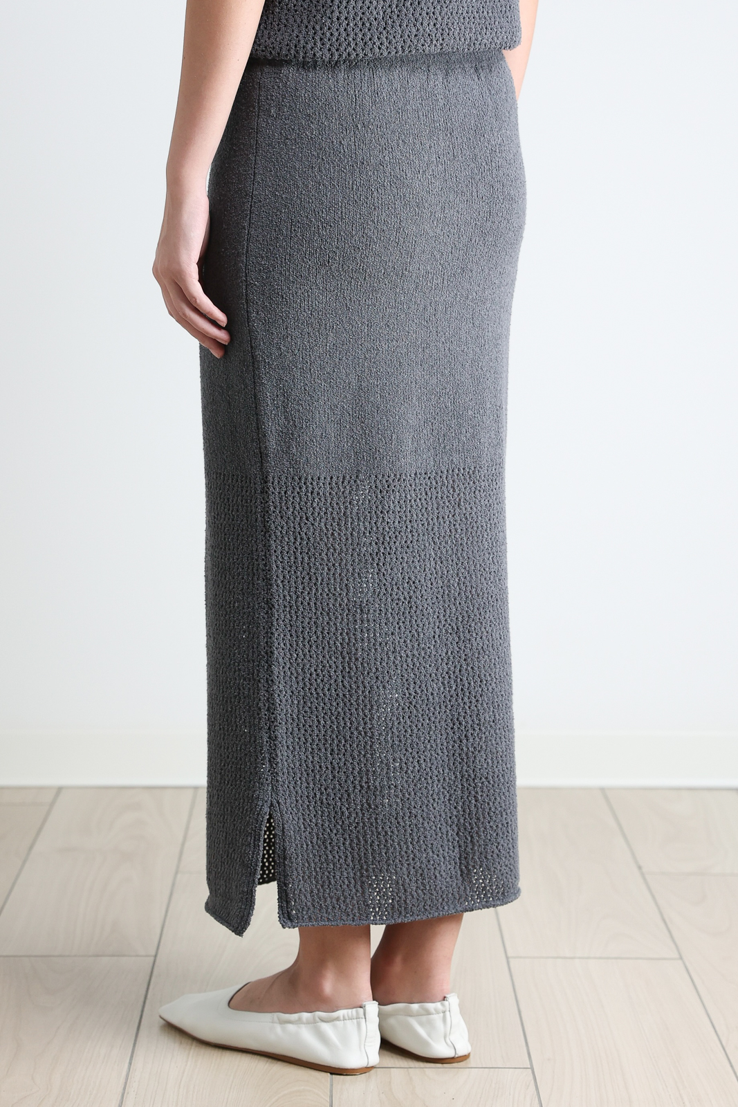 Юбка Skills&Genes, темно-серого цвета, создает элегантный контраст благодаря сочетанию хлопка, полиэстера и полиамида. Фактура ткани гладкая, текстура плотная, придающая модели строгий и современный стиль. Тренд сезона — минимализм и лаконичность, юбка с цельным кроем и прямым силуэтом подчеркивает роскошь и простоту одновременно.