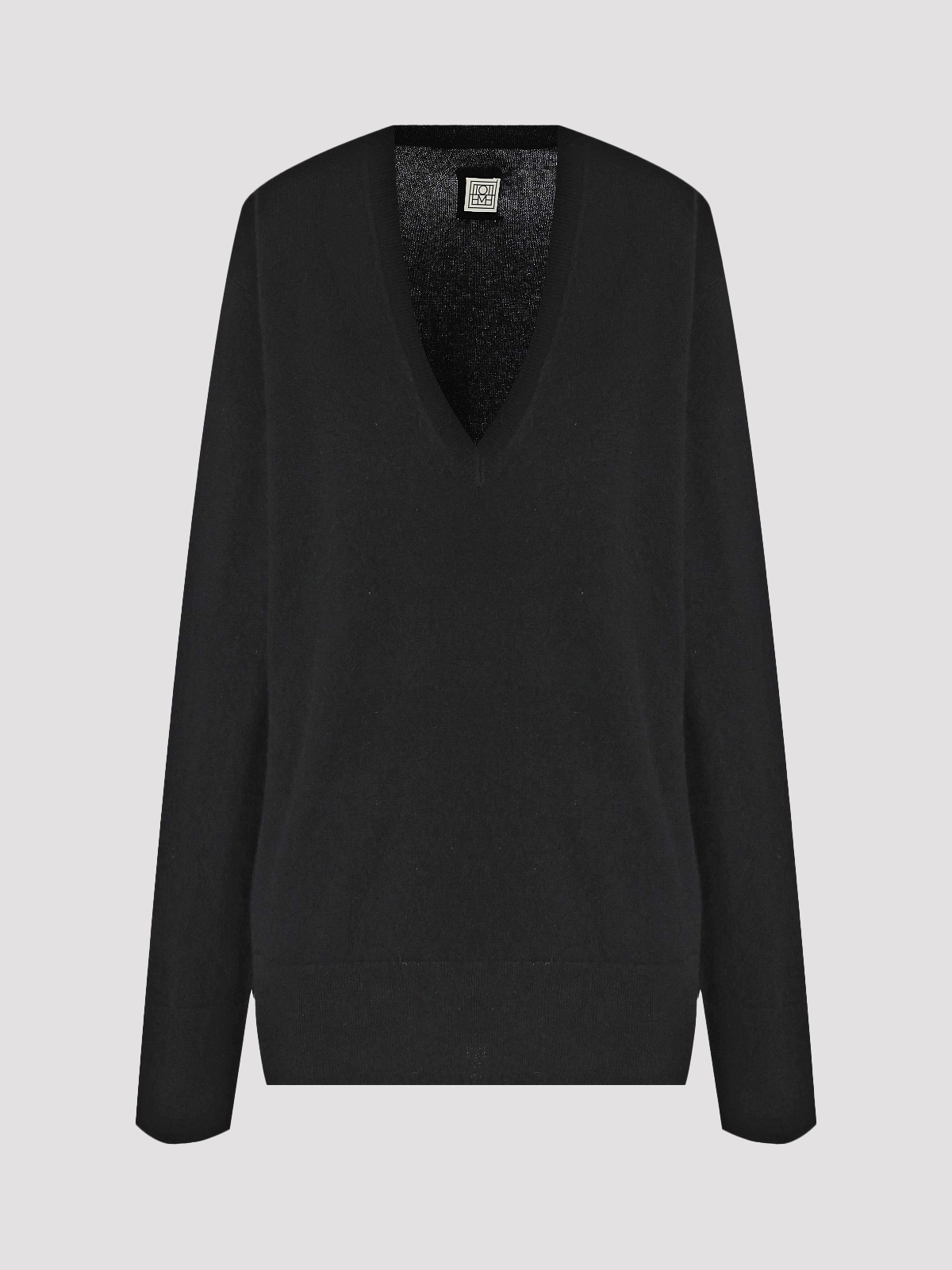 Пуловер Toteme в классическом черном цвете, выполненный из 100% кашемира, сочетает в себе элегантность и утонченность. Мягкая текстура материала подчеркивает его роскошную фактуру, а глубокий V-образный вырез придает образу современный и изысканный шарм. Приталенный силуэт с длинными рукавами идеально подходит для создания минималистичных ансамблей, отражающих актуальные тренды. Детали отделки добавляют изделию неповторимый шик и завершенность.