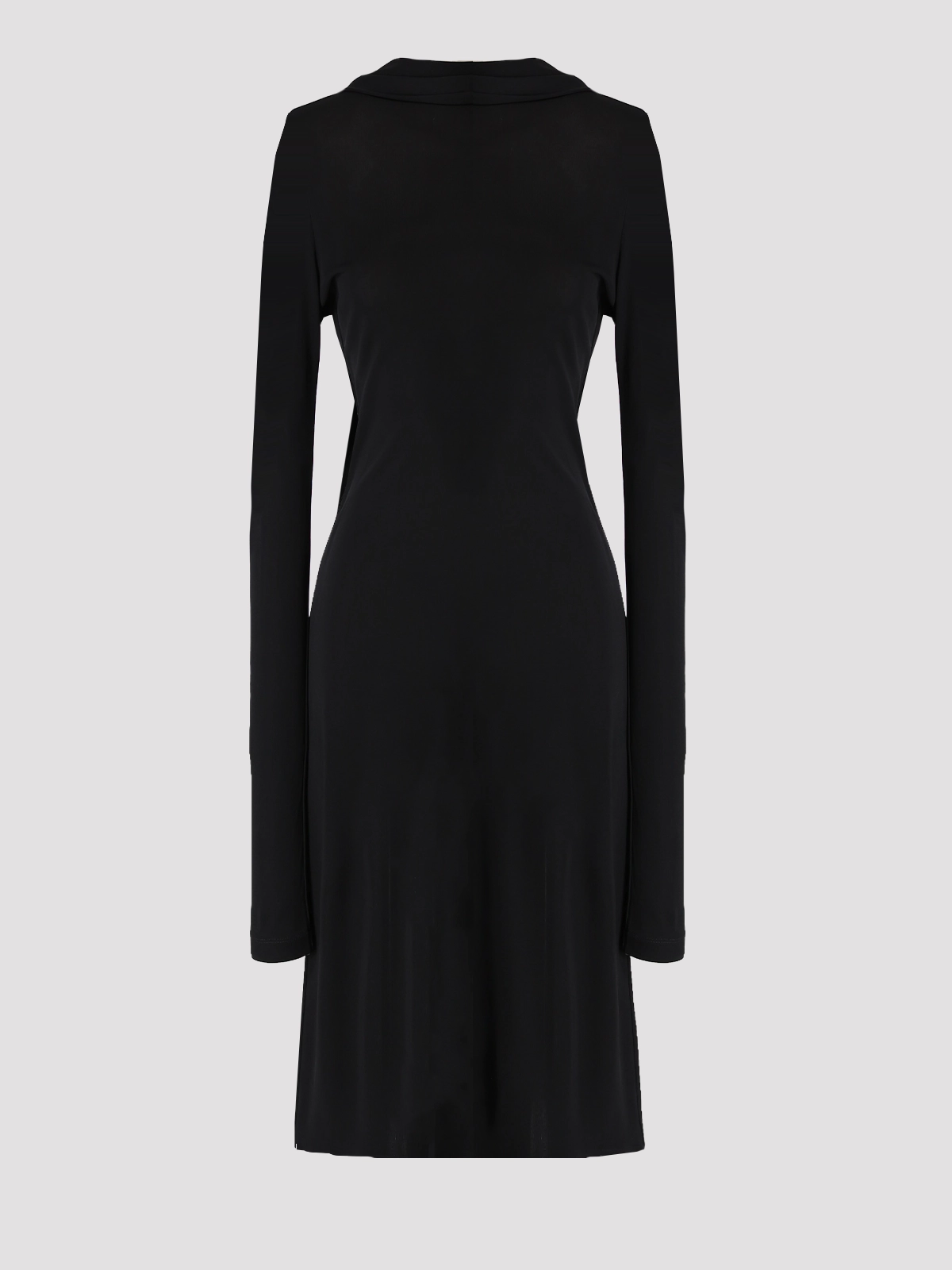 Платье Toteme черного цвета, выполненное из 100% вискозы, обладает гладкой и элегантной текстурой. Стильный крой с длинными рукавами и округлым вырезом подчеркивает минималистичный тренд, а тонкая посадка создает изящный силуэт. Простота дизайна дополняется аккуратной отделкой, придающей изделию современный и роскошный вид.