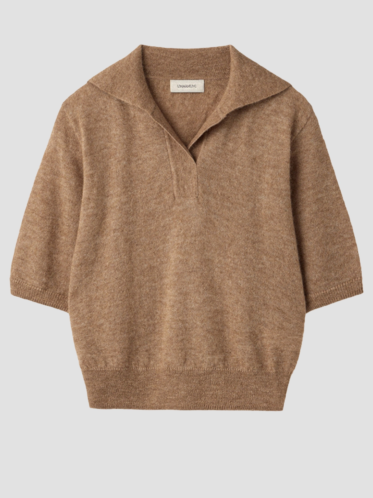 Поло Umarmung в бежевом цвете, выполненное из смеси 60% альпаки, 35% нейлона и 5% шерсти, обладает нежной текстурой и элегантным силуэтом. Модель с V-образным вырезом и короткими рукавами подчеркивает современный стиль и комфорт.