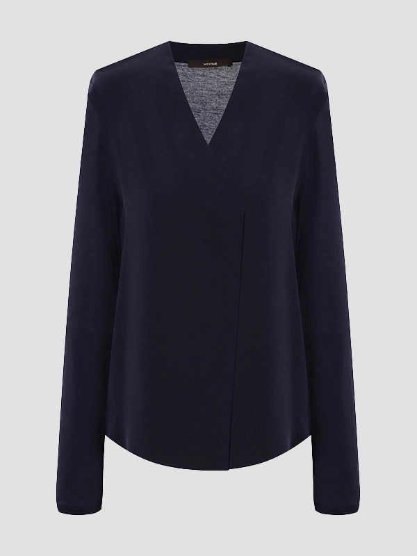 Блузка Windsor, темно-синего цвета, создает элегантный контраст. Перед выполнен из шелка, придающего ткани гладкость и шелковистость, спинка и рукава из лиоцелла обеспечивают легкость и комфорт. Лаконичный крой с V-образным вырезом подчеркивает классический стиль, а небольшая отделка на горловине добавляет детализированной текстуры. Стиль блузки актуален для осени и весны, она идеально сочетается с джинсами или брюками, создавая современный силуэт.
