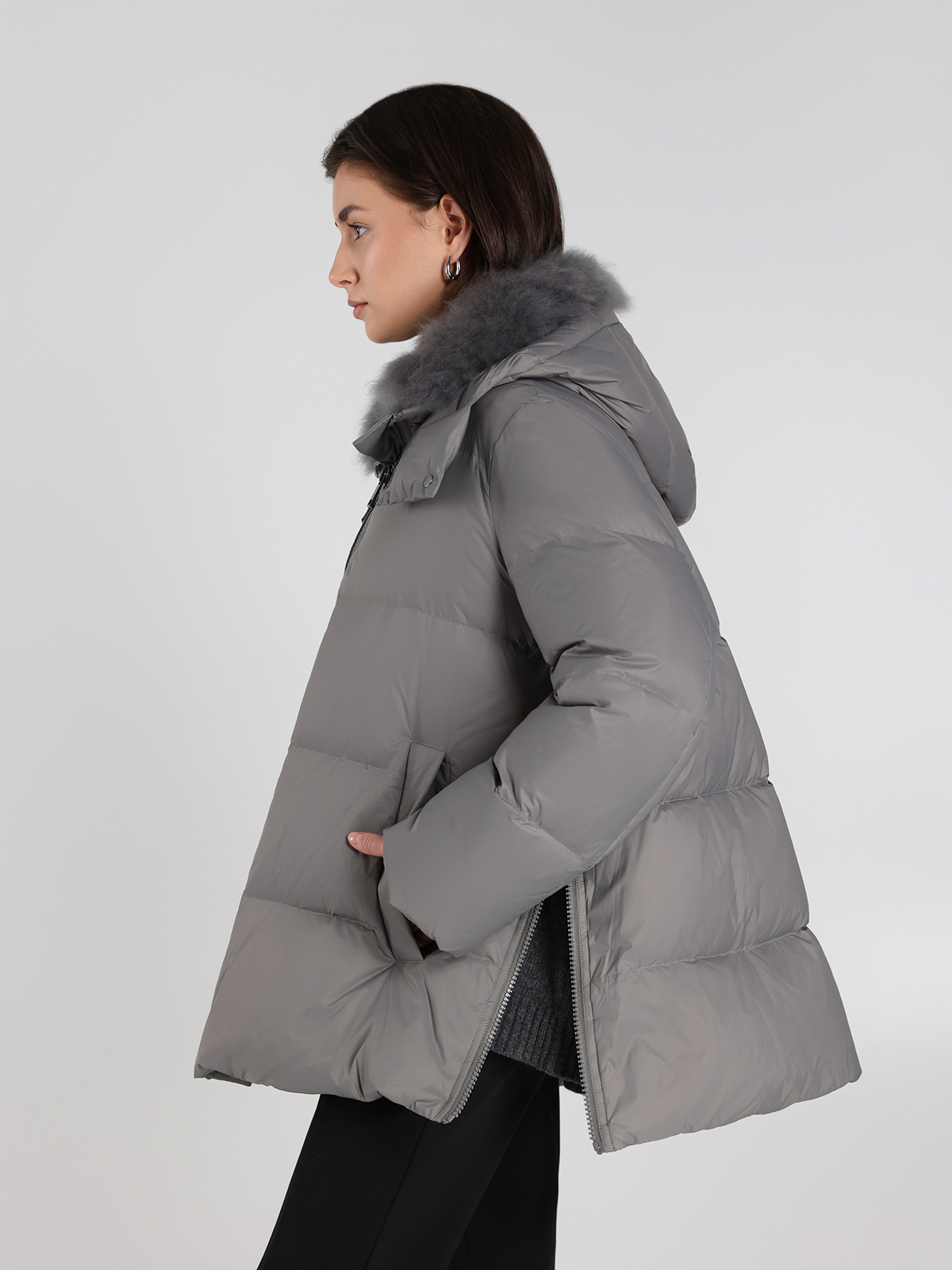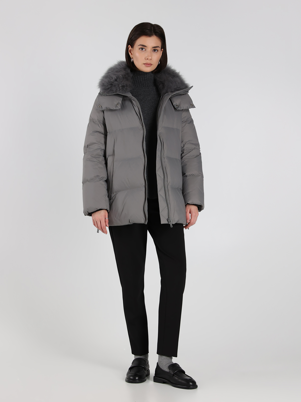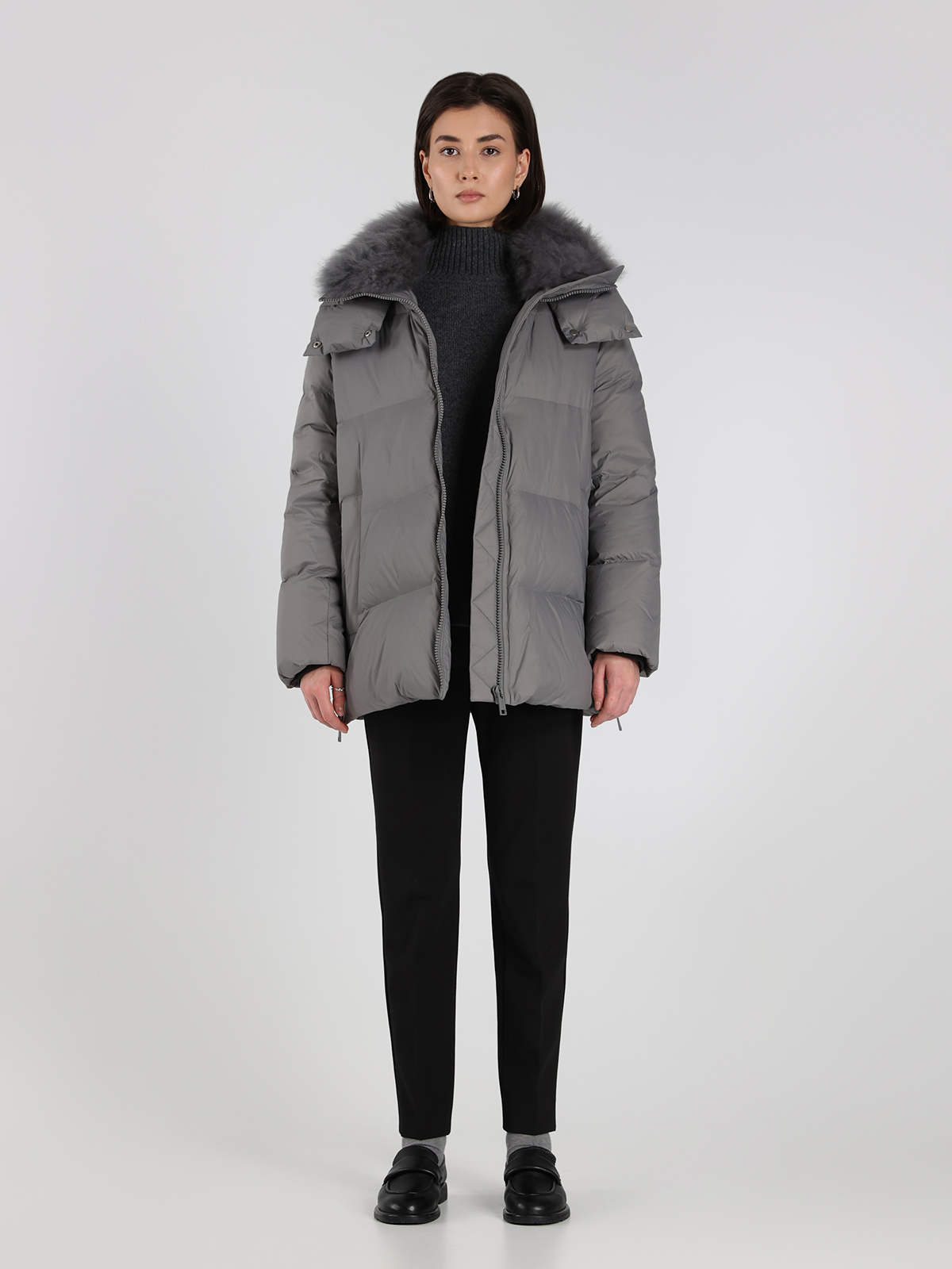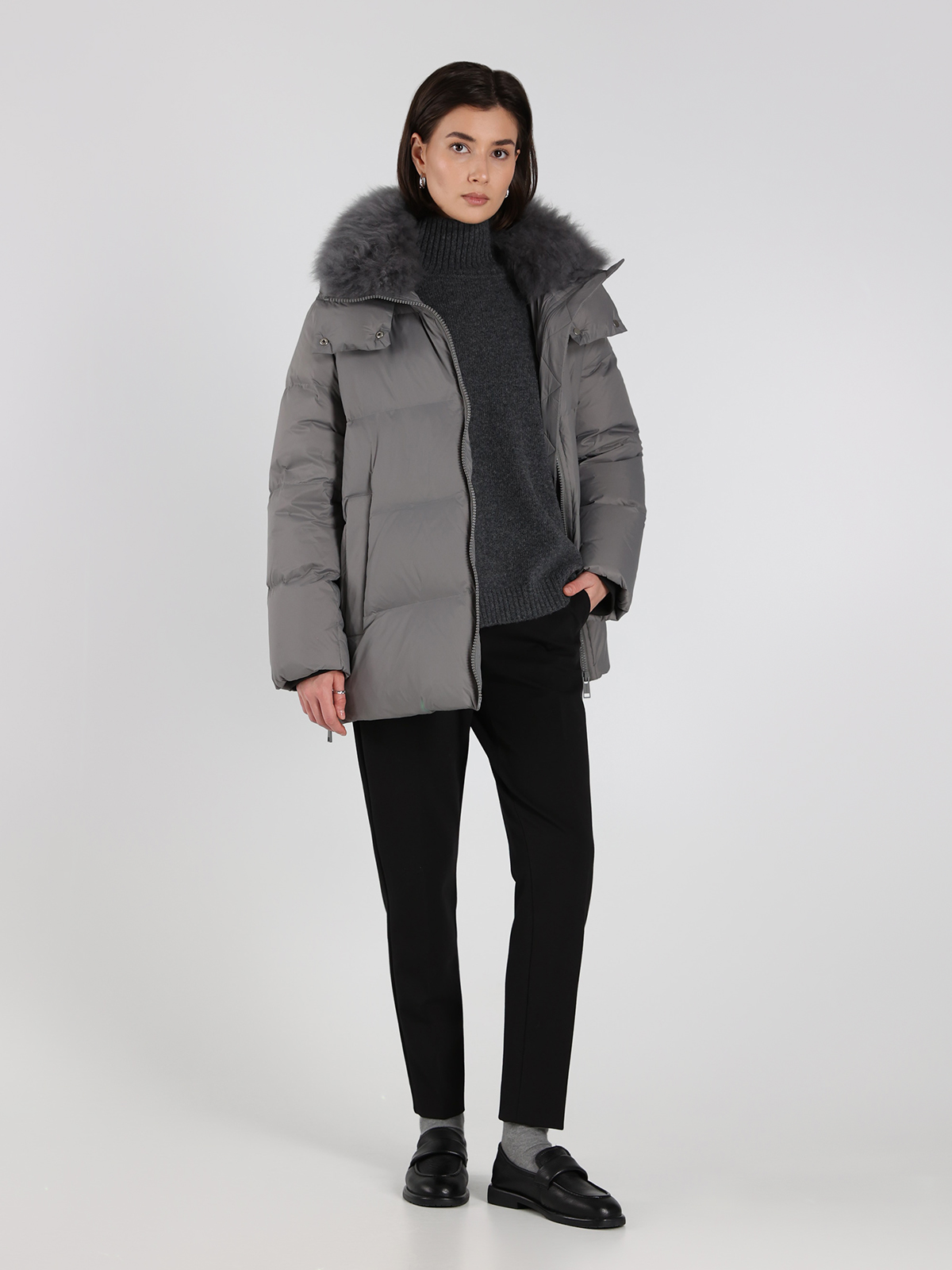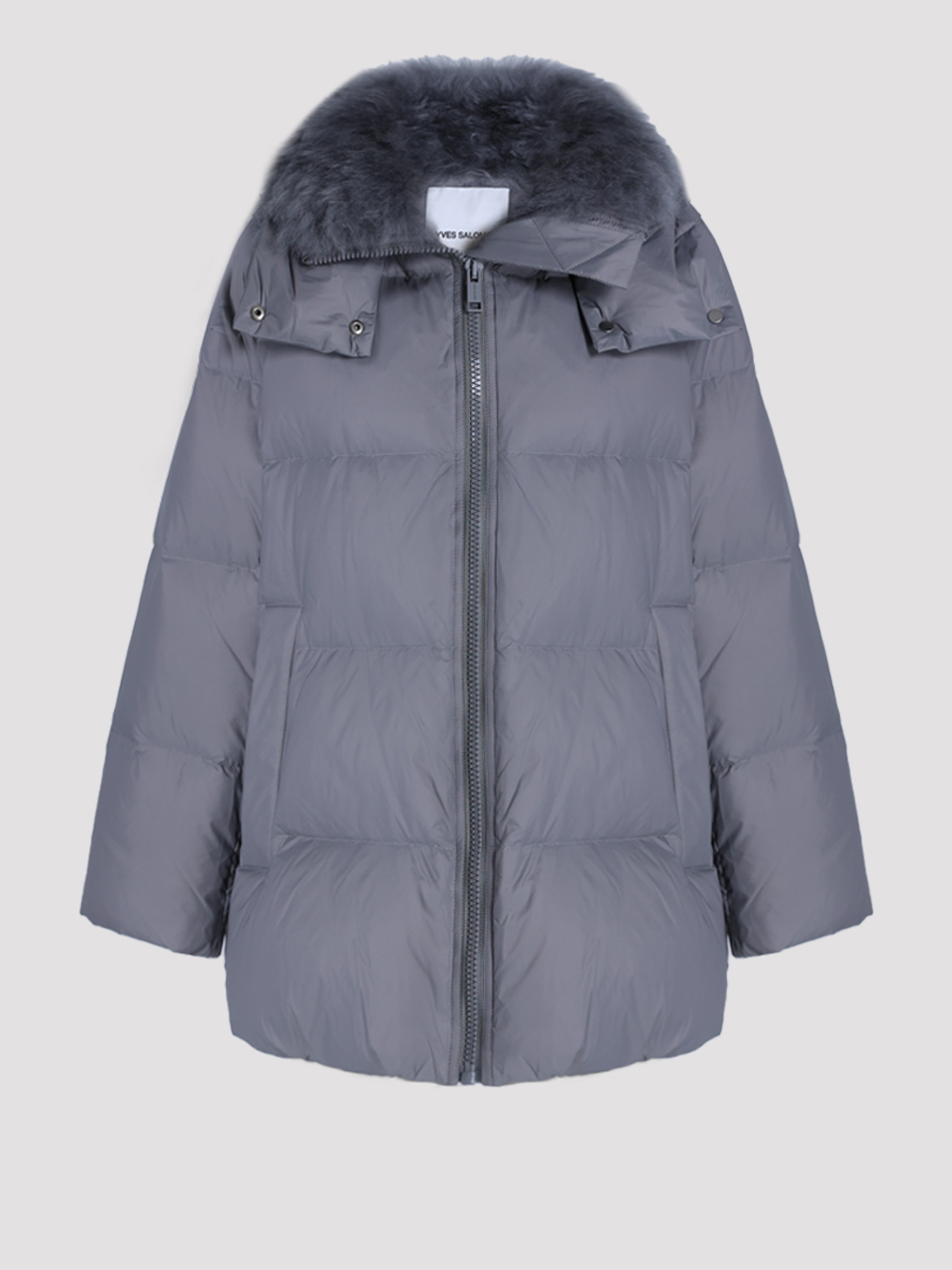 Пуховик Yves Salomon в сером цвете — воплощение элегантности и комфорта. Сделан из 100% полиамида с наполнителем из 95% пуха и 5% пера, он идеально сохраняет тепло. Воротник из натуральной овчины придает изделию роскошный вид и дополнительную защиту от холода. Лаконичный крой и текстура ткани подчеркивают современный стиль, делая этот пуховик незаменимым элементом гардероба для холодных дней.