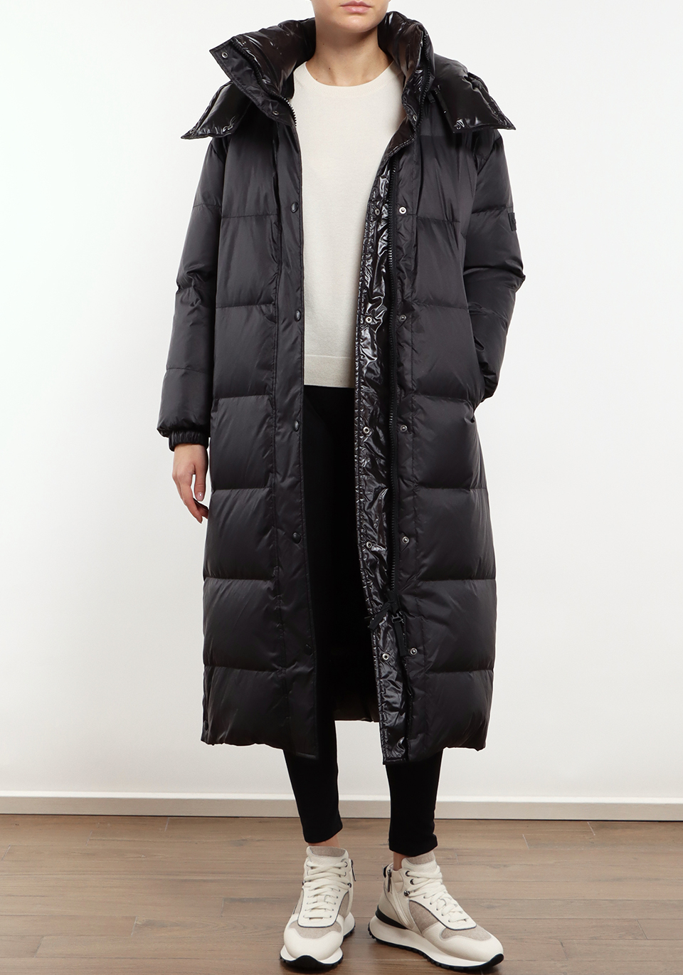Пуховик Yves Salomon, черного цвета, выполнен из 100% полиэстера с подкладкой из того же материала. Наполнен высококачественным 90% пухом и 10% пером, создавая идеальную комбинацию тепла и легкости. Лаконичный крой и элегантный силуэт обеспечивают универсальность в сочетании с различными стилями. Фактура ткани гладкая, текстура плотная, подчеркивая роскошь бренда. Дополняет модель капюшон на молнии и классические пуговицы, придающие изделию строгий и современный тренд сезона.