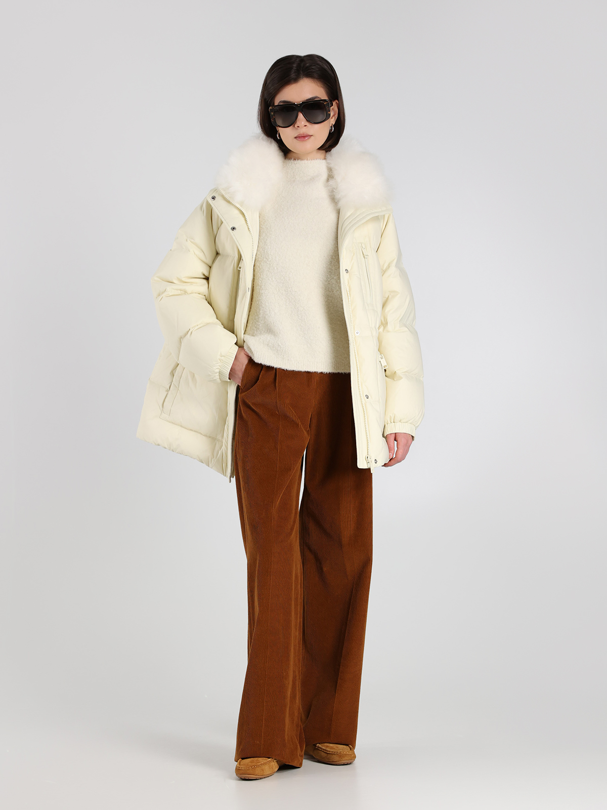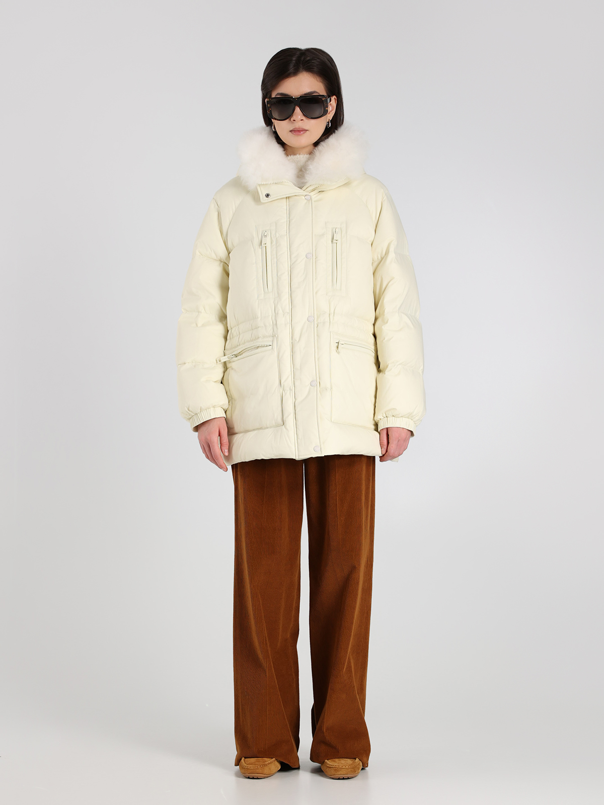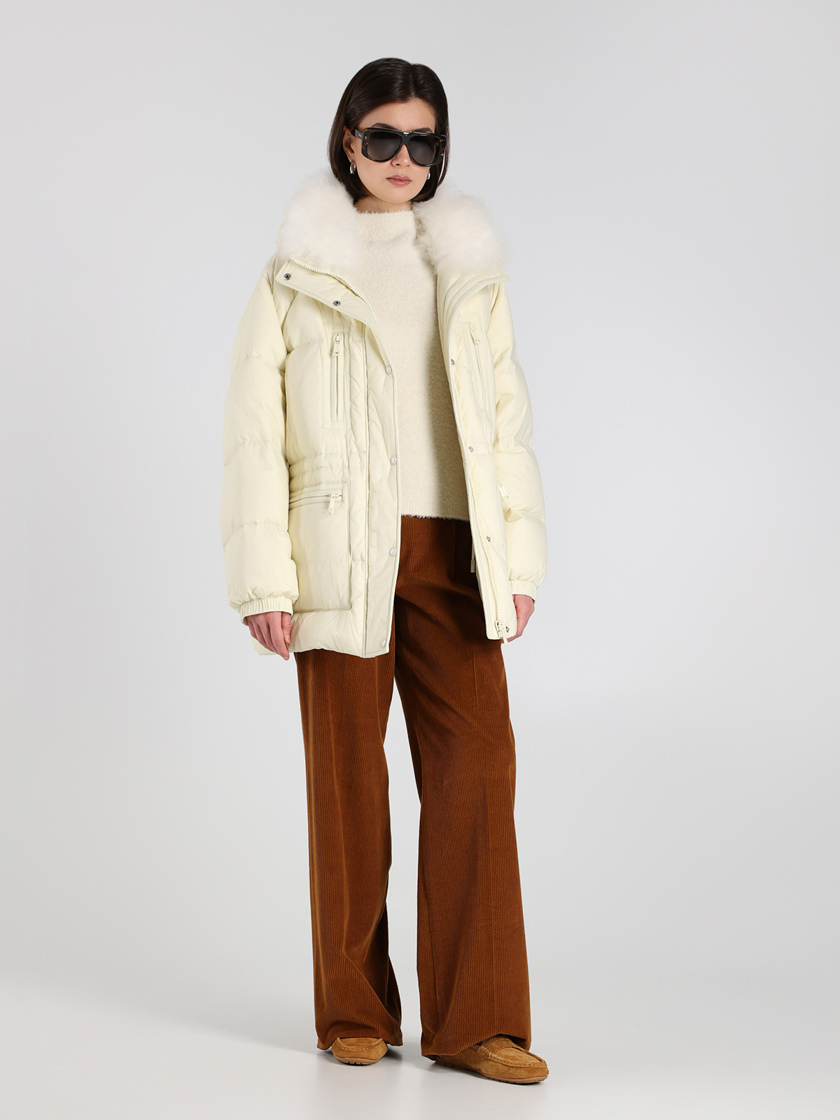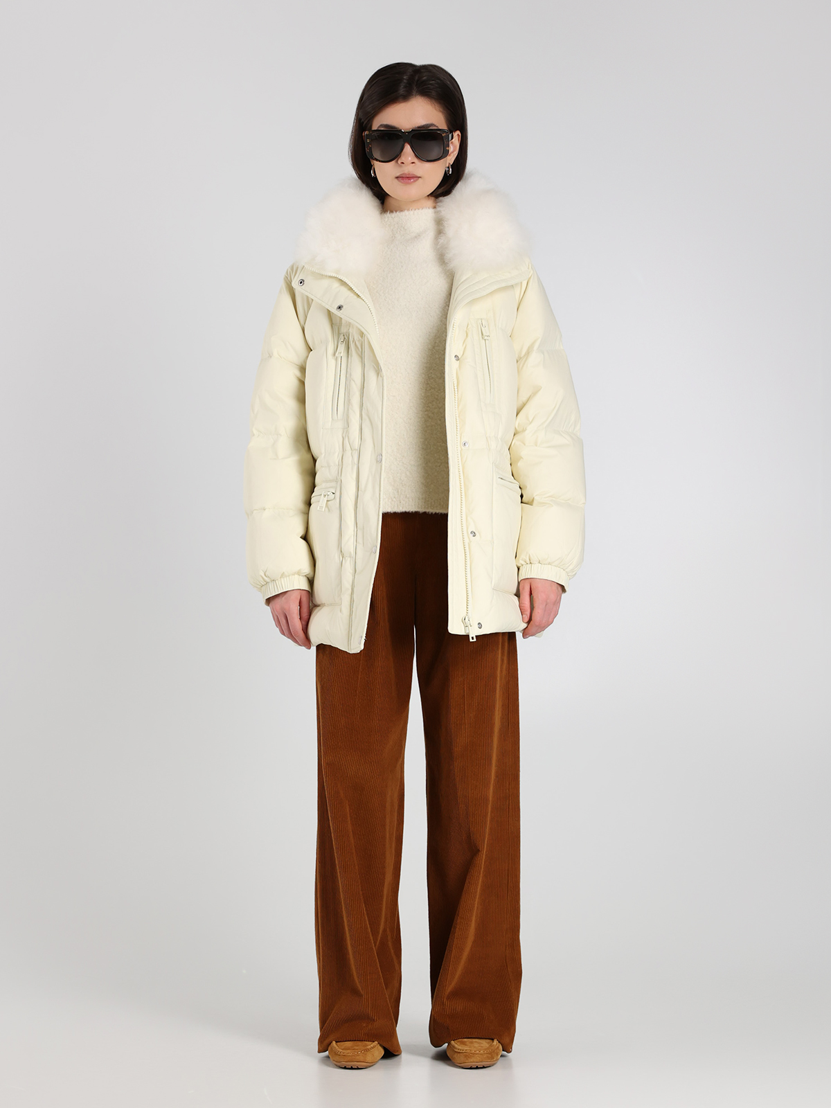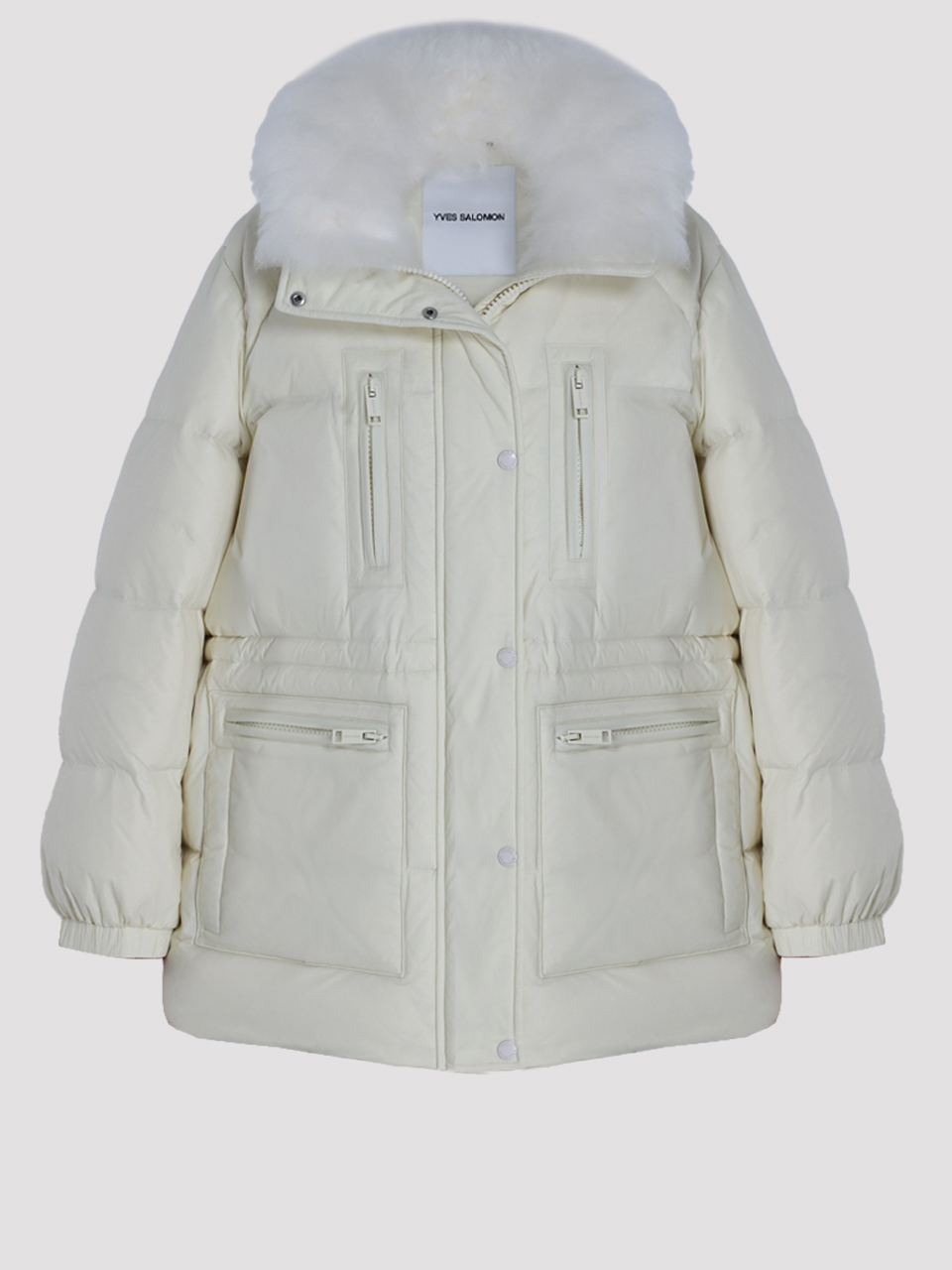 Пуховик Yves Salomon в белом цвете, выполненный из 100% полиамида с натуральным наполнителем из 95% пуха и 5% пера, сочетает в себе элегантность и функциональность. Мягкий воротник из овчины придает изделию утонченный вид, а классический крой подчеркивает современный стиль. Декоративные элементы, такие как контрастные молнии и карманы, добавляют практичности и завершенности образу.