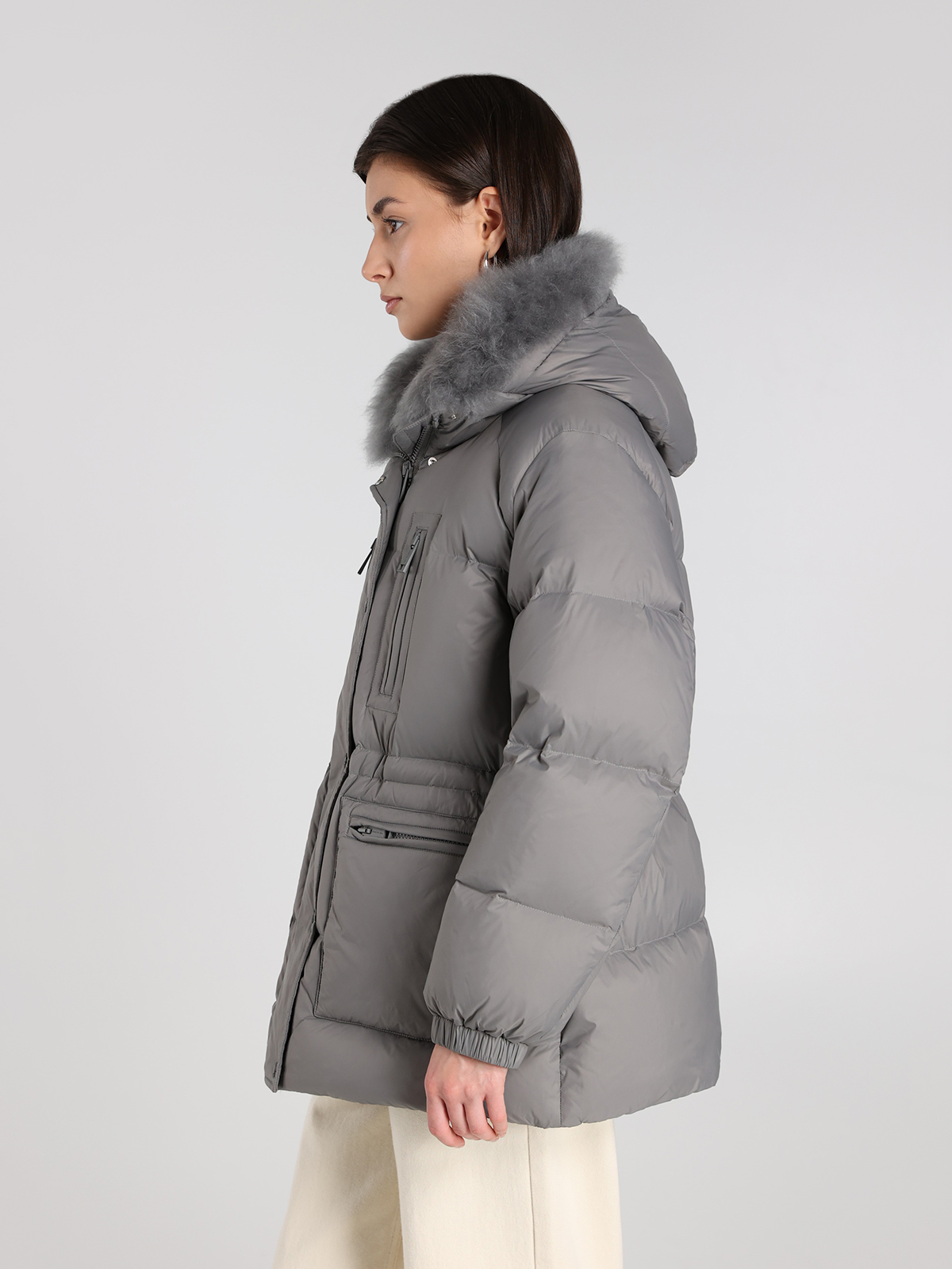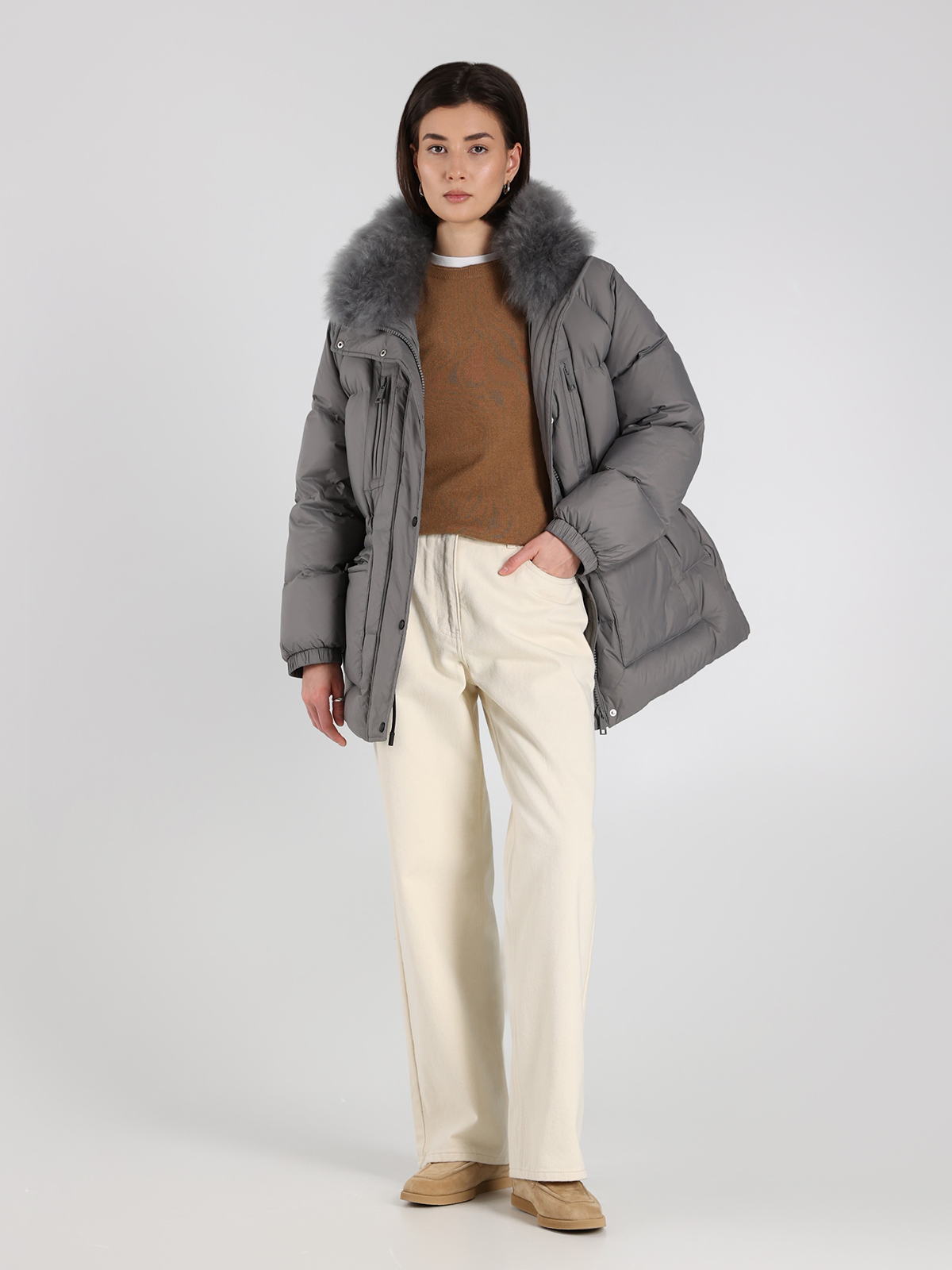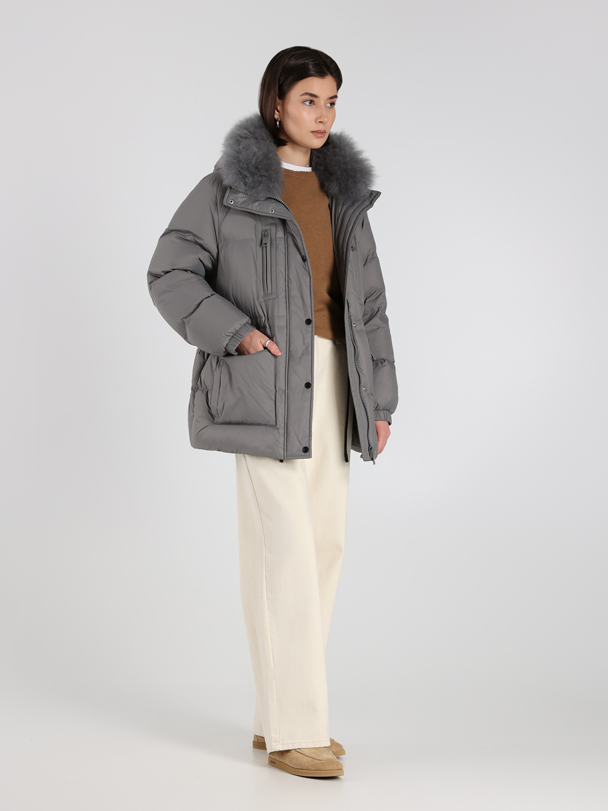 Пуховик Yves Salomon в сером цвете — воплощение элегантности и комфорта. Изготовлен из 100% полиамида с пышным воротником из натуральной овчины, он сочетает в себе мягкость и тепло благодаря наполнителю из 95% пуха и 5% пера. Классический крой с функциональными карманами подчеркивает современный стиль, а текстура ткани придает изделию легкую роскошь. Идеальный выбор для тех, кто ценит качество и изысканный дизайн.