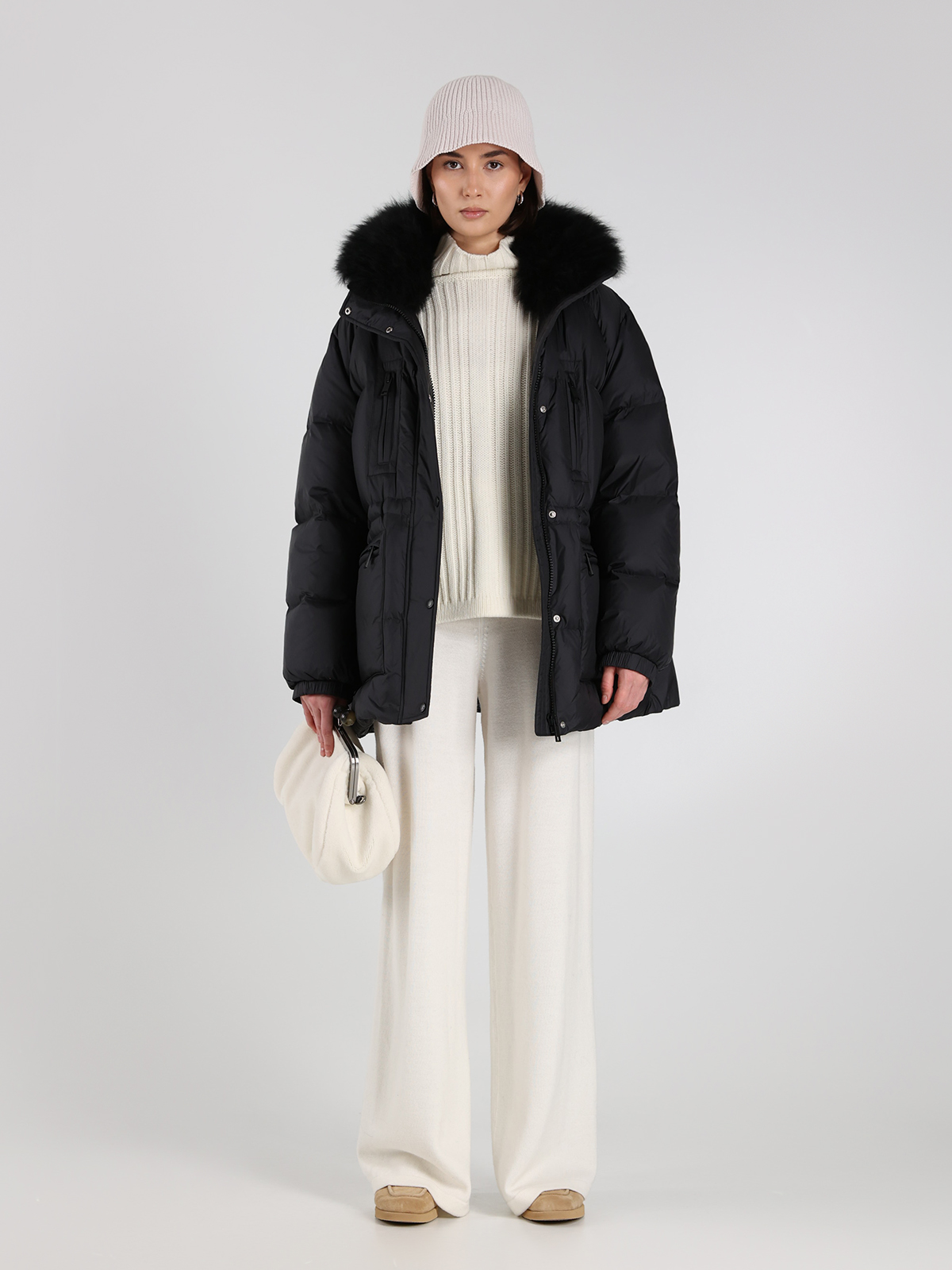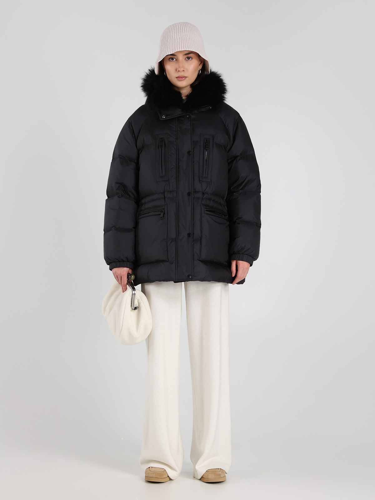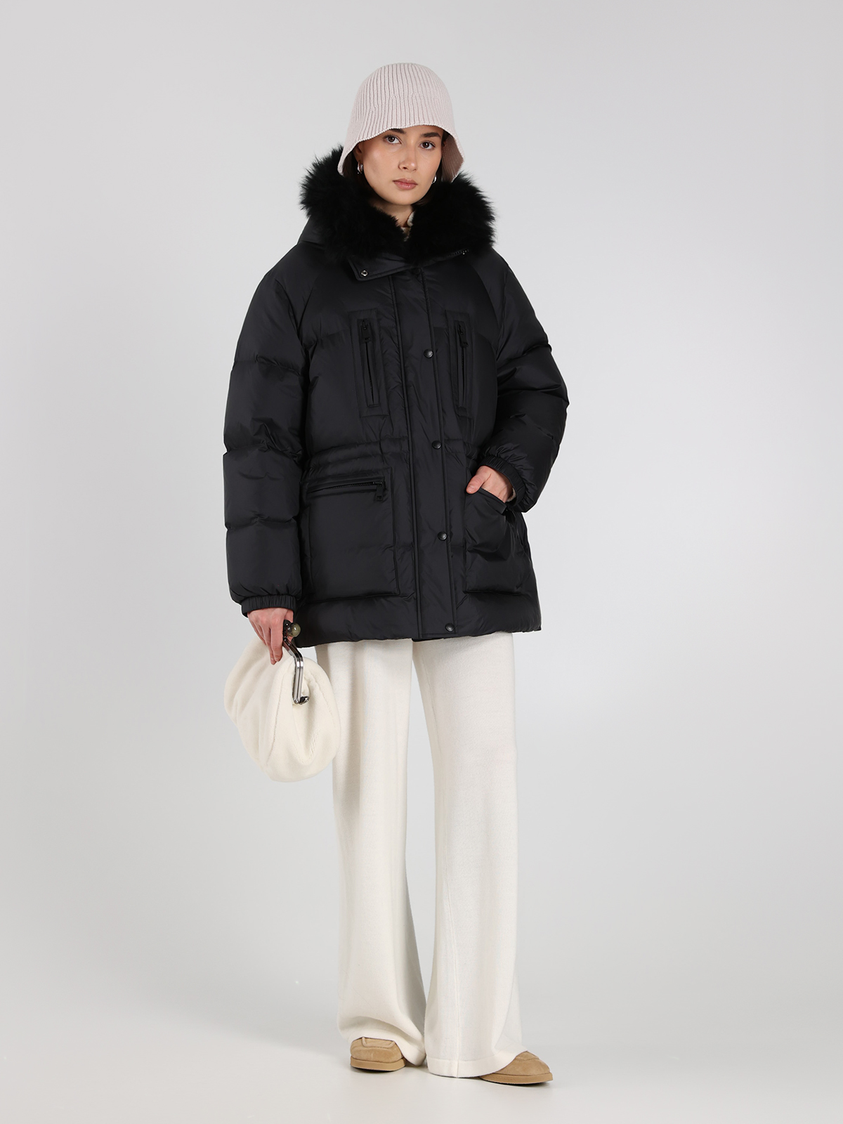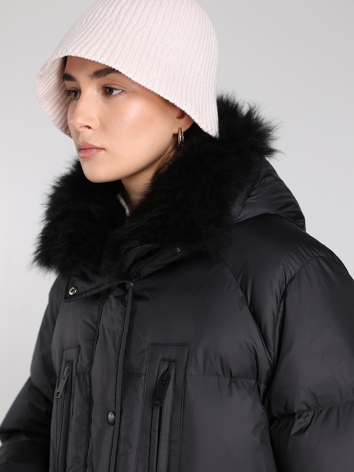Пуховик Yves Salomon в глубоком черном цвете — воплощение элегантной простоты и современного стиля. Сделан из прочного 100% полиамида, с объемным воротником из натуральной овчины и наполнителем из 95% пуха и 5% пера для максимального комфорта. Классический крой с контрастными молниями и функциональными карманами подчеркивает минималистичный тренд, а текстура ткани придает изделию легкий блеск и изысканность.