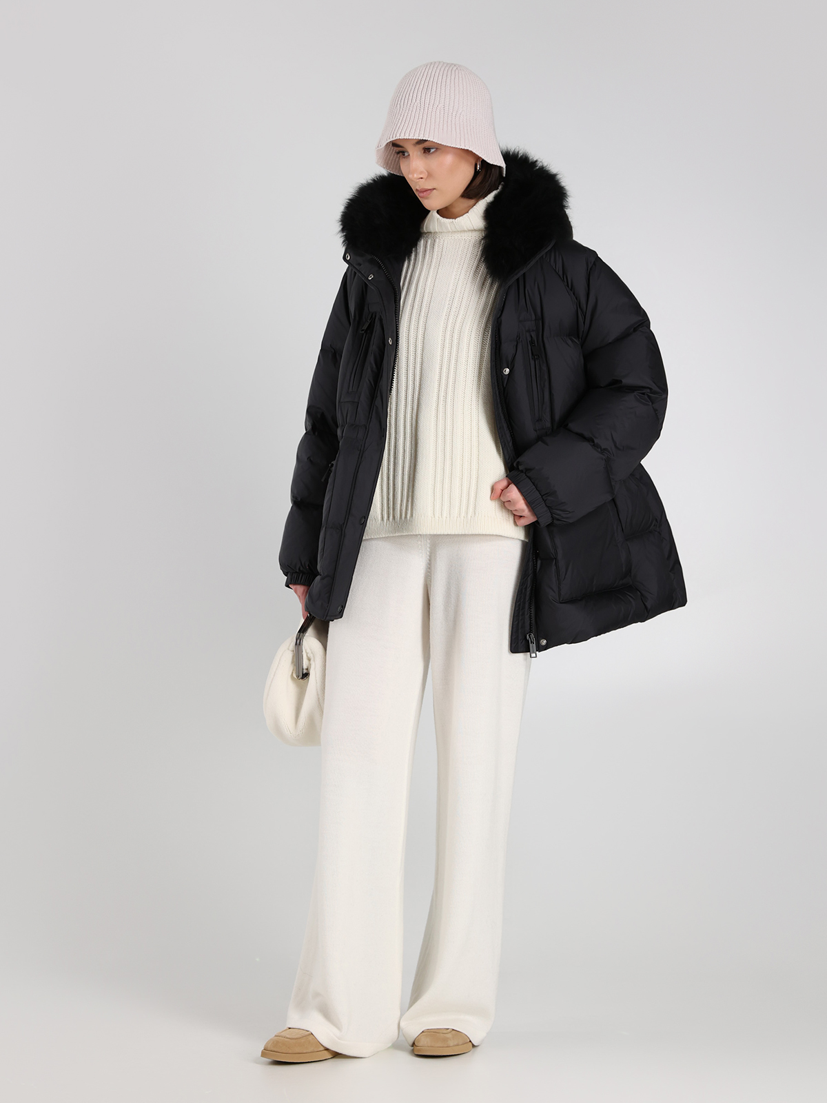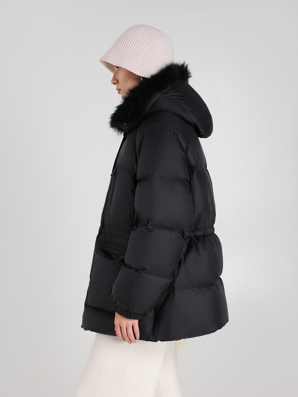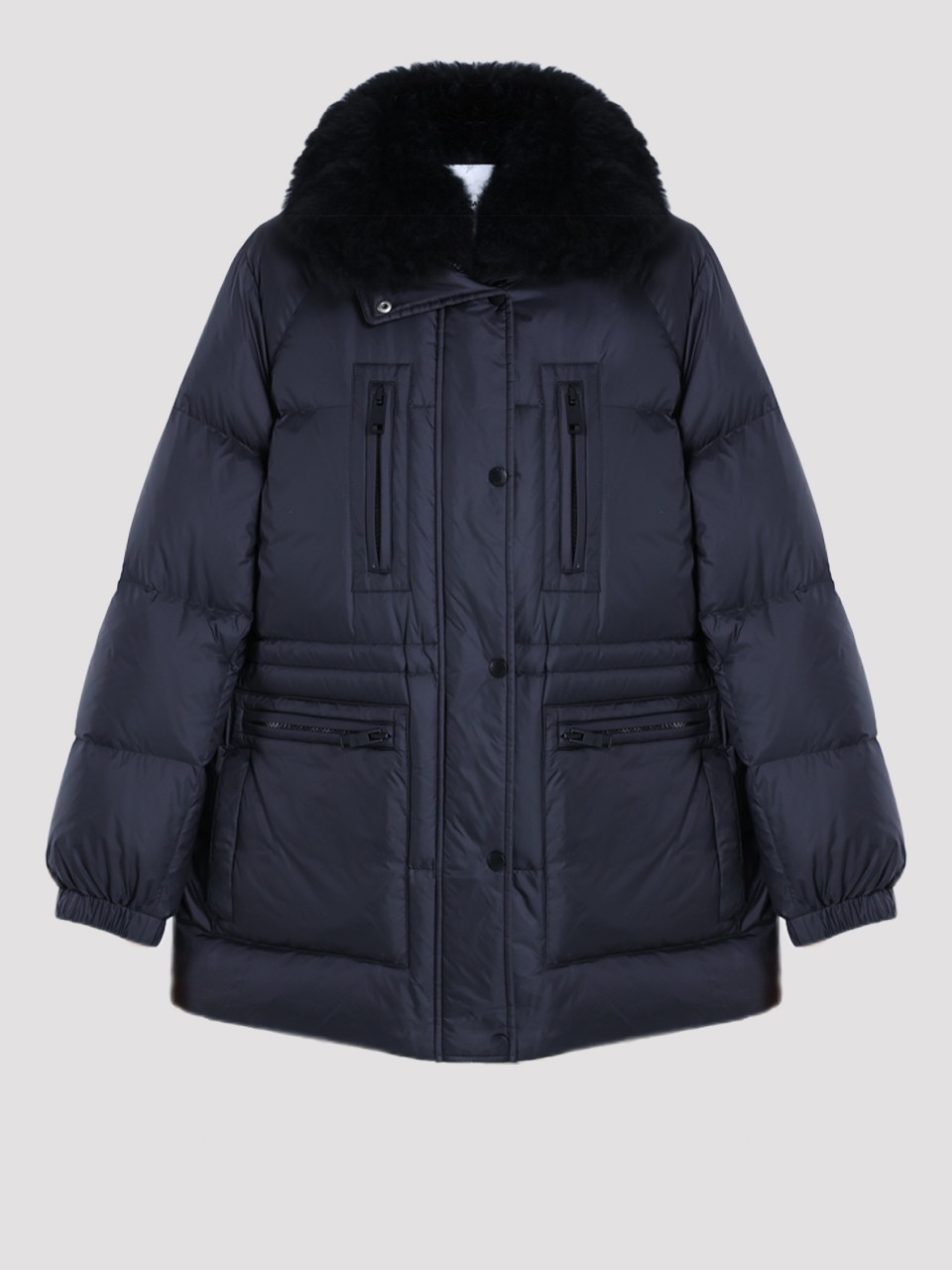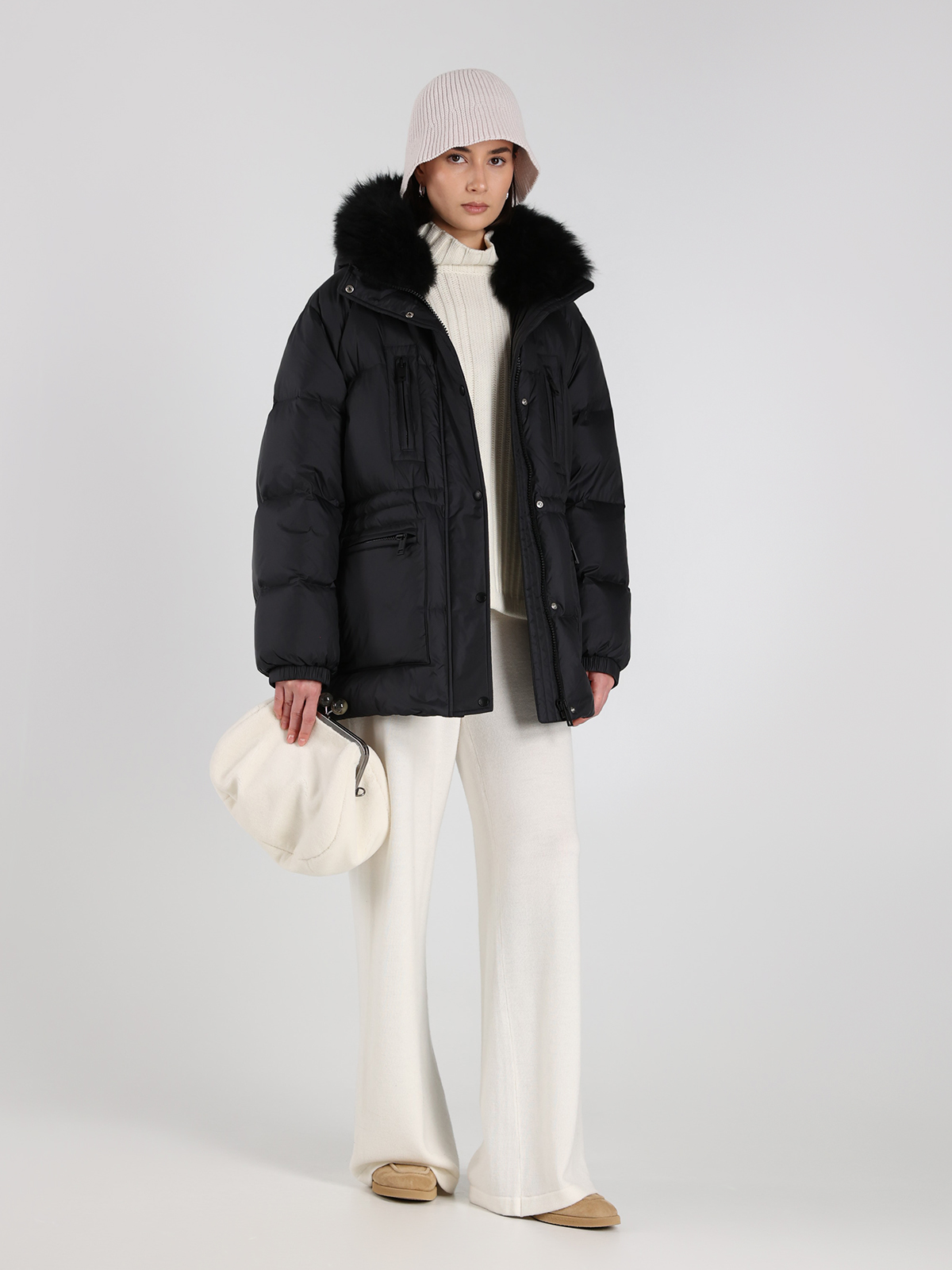 Пуховик Yves Salomon в глубоком черном цвете — воплощение элегантной простоты и современного стиля. Сделан из прочного 100% полиамида, с объемным воротником из натуральной овчины и наполнителем из 95% пуха и 5% пера для максимального комфорта. Классический крой с контрастными молниями и функциональными карманами подчеркивает минималистичный тренд, а текстура ткани придает изделию легкий блеск и изысканность.